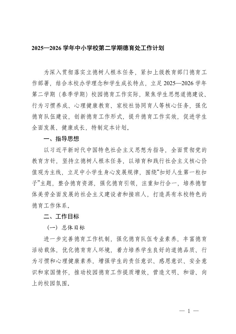 ,工作,学校,中小学,中小学校20252026学年中小学校第二学期德育处工作