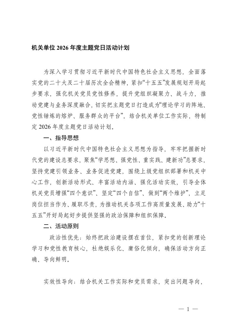 ,机关单位2篇全年机关单位2026年度主题党日活动