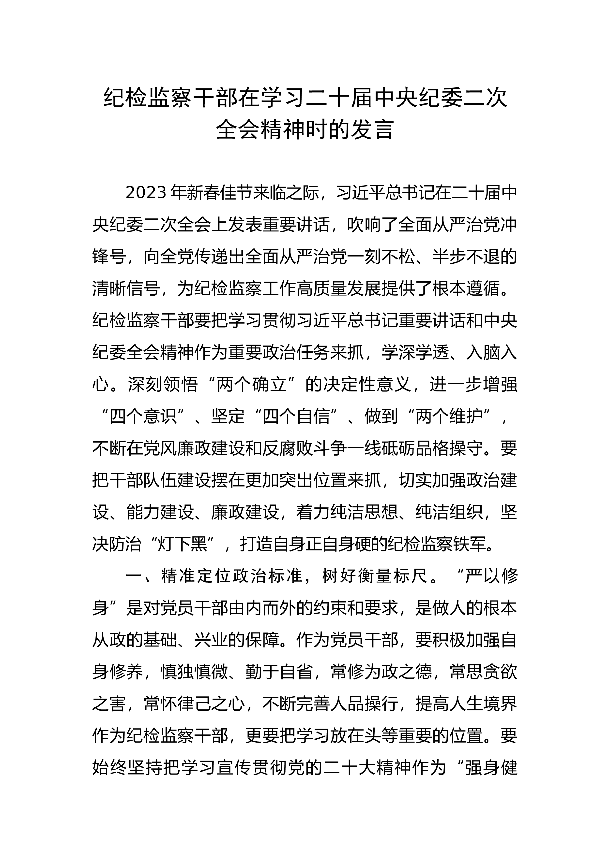 在2023年全面从严治党工作座谈会上的发言各位领导,同志们:根据会议安排,我就**在全面从严治党工作中存在的问题、下步工作打算及抓好纪检监察干部队伍建设的举措作个汇报,不妥之处,请批评指正。一、工作开展情况(一)坚持学思践悟,学用结合,拧紧“总开关”。始终坚持把加强理想信念作为重大政治使命,切实拧紧思想和行动的“总开关”。采取党委中心组学习、三会一课、干部例会等形式,组织全体干部认真学习贯彻落实习近平总书记关于全面从严治党、作风建设等重要论述,从而教育引导广大党员干部坚定理想信念,时刻保持“赶考”的清醒,增强全面从严治党永远在路上的政治自觉和行动自觉。(二)坚持管党治党,聚焦主责,抓住“牛鼻子...