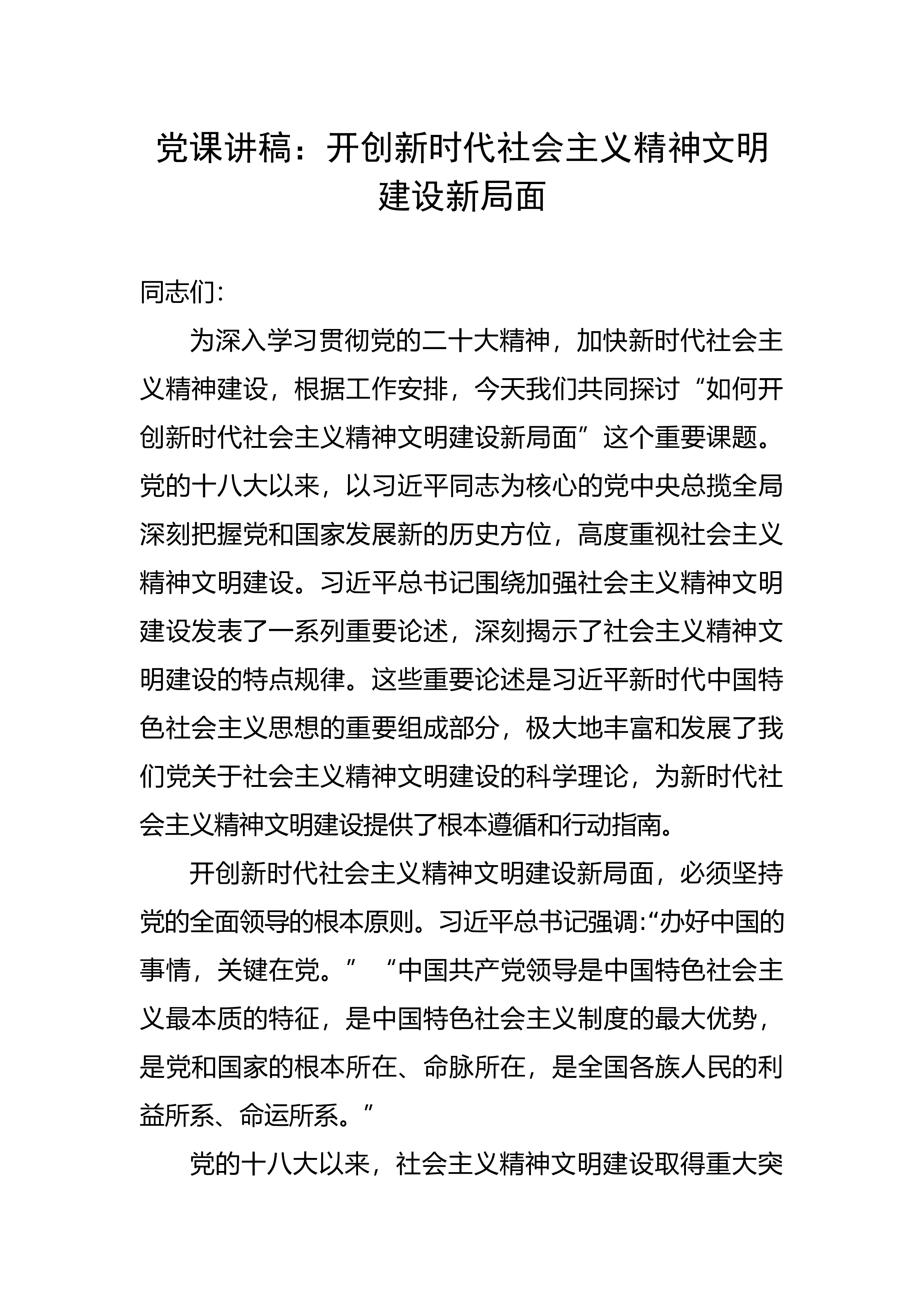 新局面同志们:为深入学习贯彻党的二十大精神,加快新时代社会主义精神建设,根据工作安排,今天我们共同探讨“如何开创新时代社会主义
