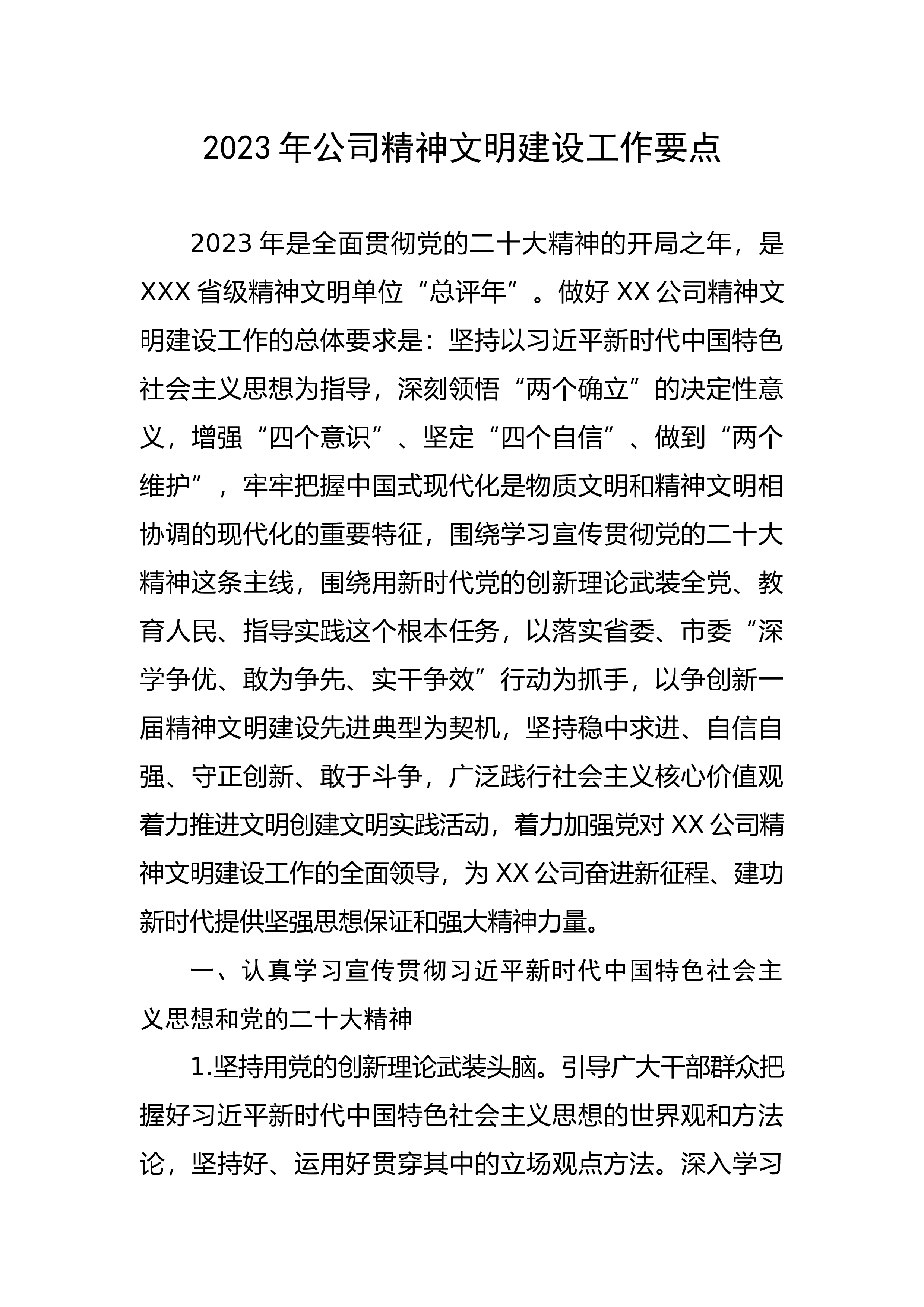 工作要点2023年是全面贯彻党的二十大精神的开局之年,是XXX省级精神文明单位“总评年”。做好XX公司