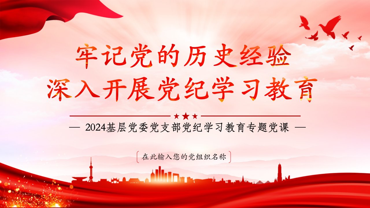 2024党纪教育6月牢记党的历史经验 深入开展党纪学习教育党课ppt模板(带内容)党支部团支部党员干部学习党课课件