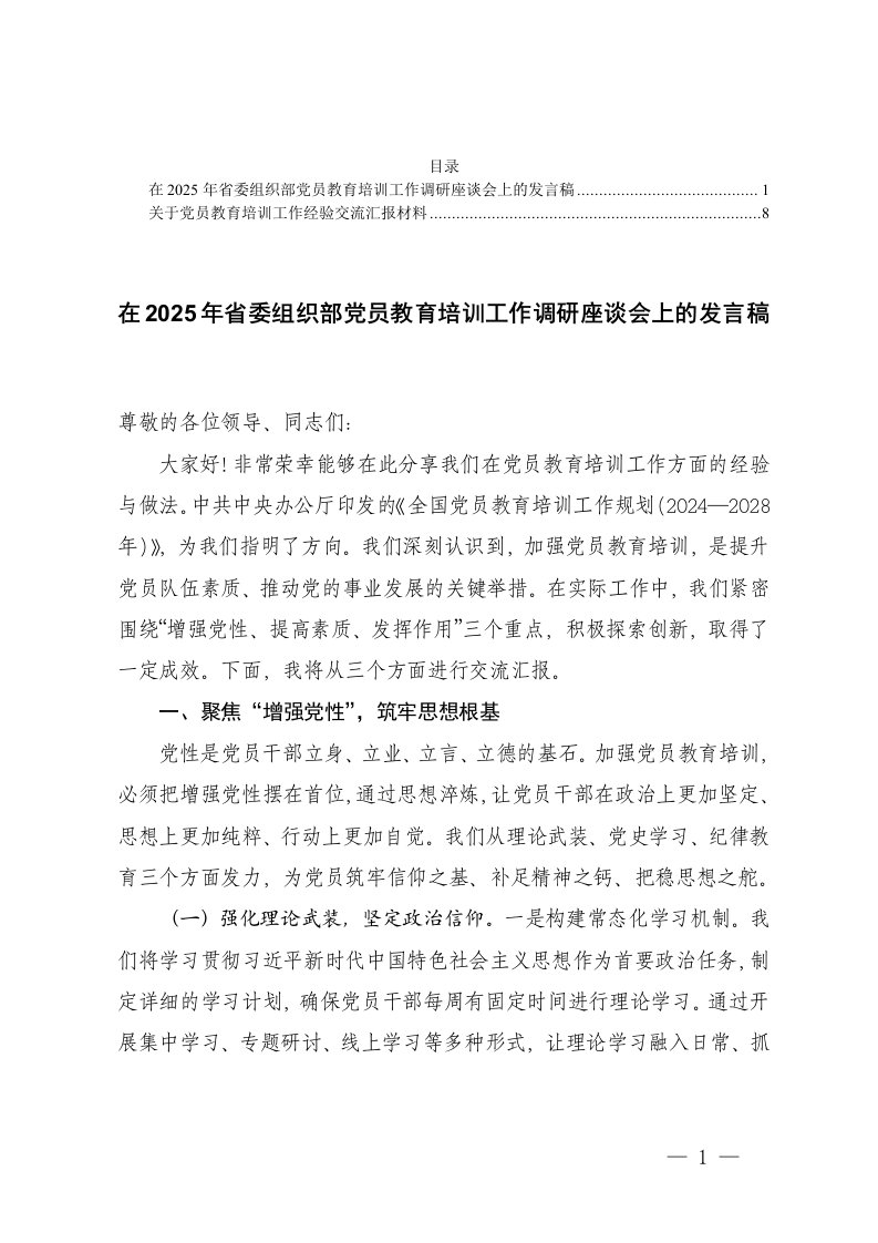 在2025年省委组织部党员教育培训工作调研座谈会上的发言稿关于党员教育培训工作经验交流汇报