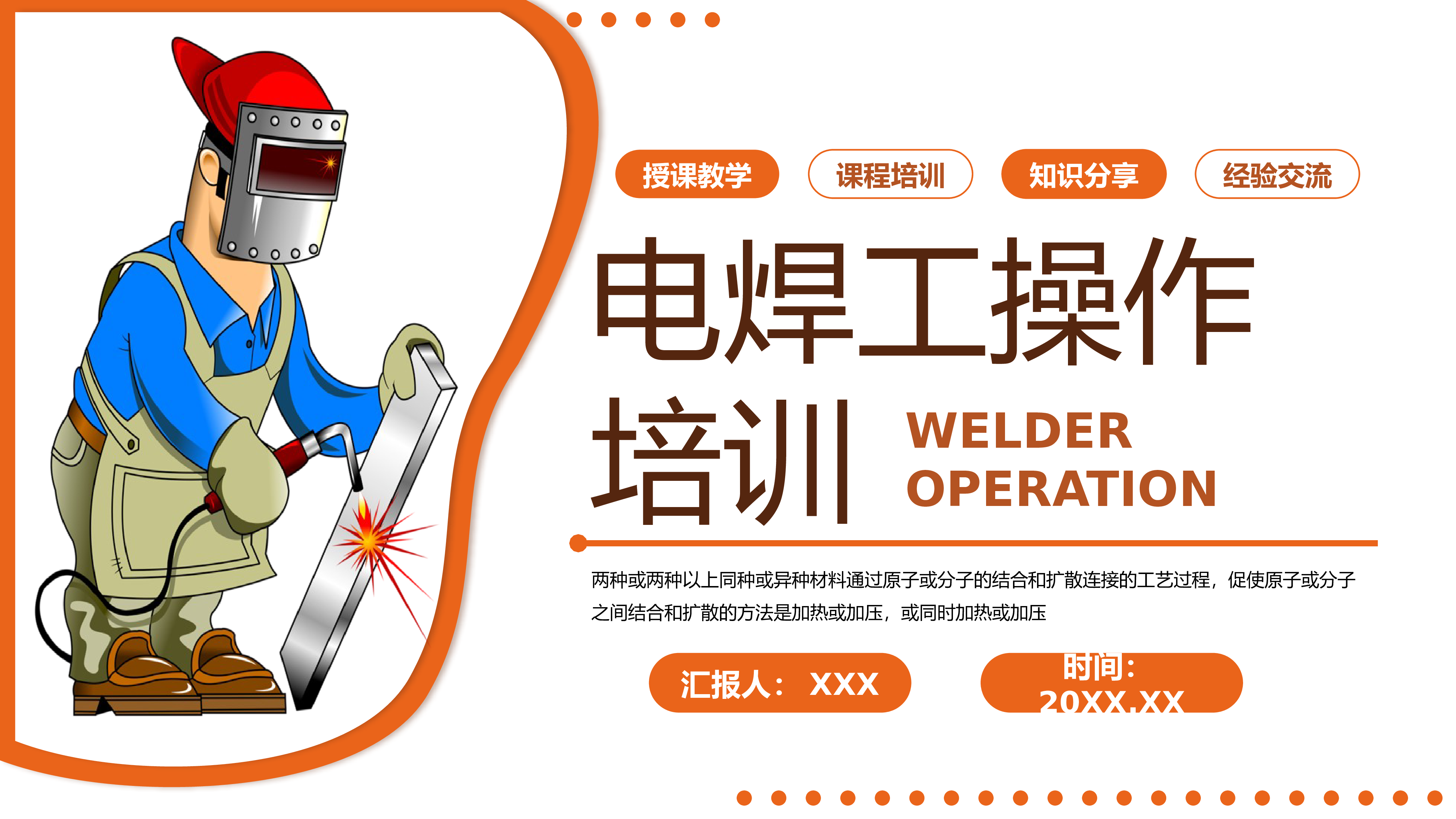 2024微党课2023电焊工操作培训PPT简约风电焊工授课教学课程培训课件模板下载