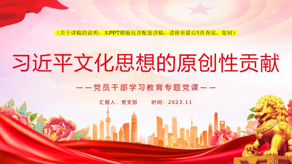 党课课件,专题党课,党员干部,思想,文化,党员干部学习教育2023习近平文化思想的原创性贡献ppt模板(含配套讲稿)党员干部学习教育专题党课课件模板党课课件,专题党课,党员干部,思想,文化,党员干部学习教育2023习近平文化思想的原创性贡献ppt模板(含配套讲稿)党员干部学习教育专题党课课件模板党课课件,专题党课,党员干部,思想,文化,党员干部学习教育