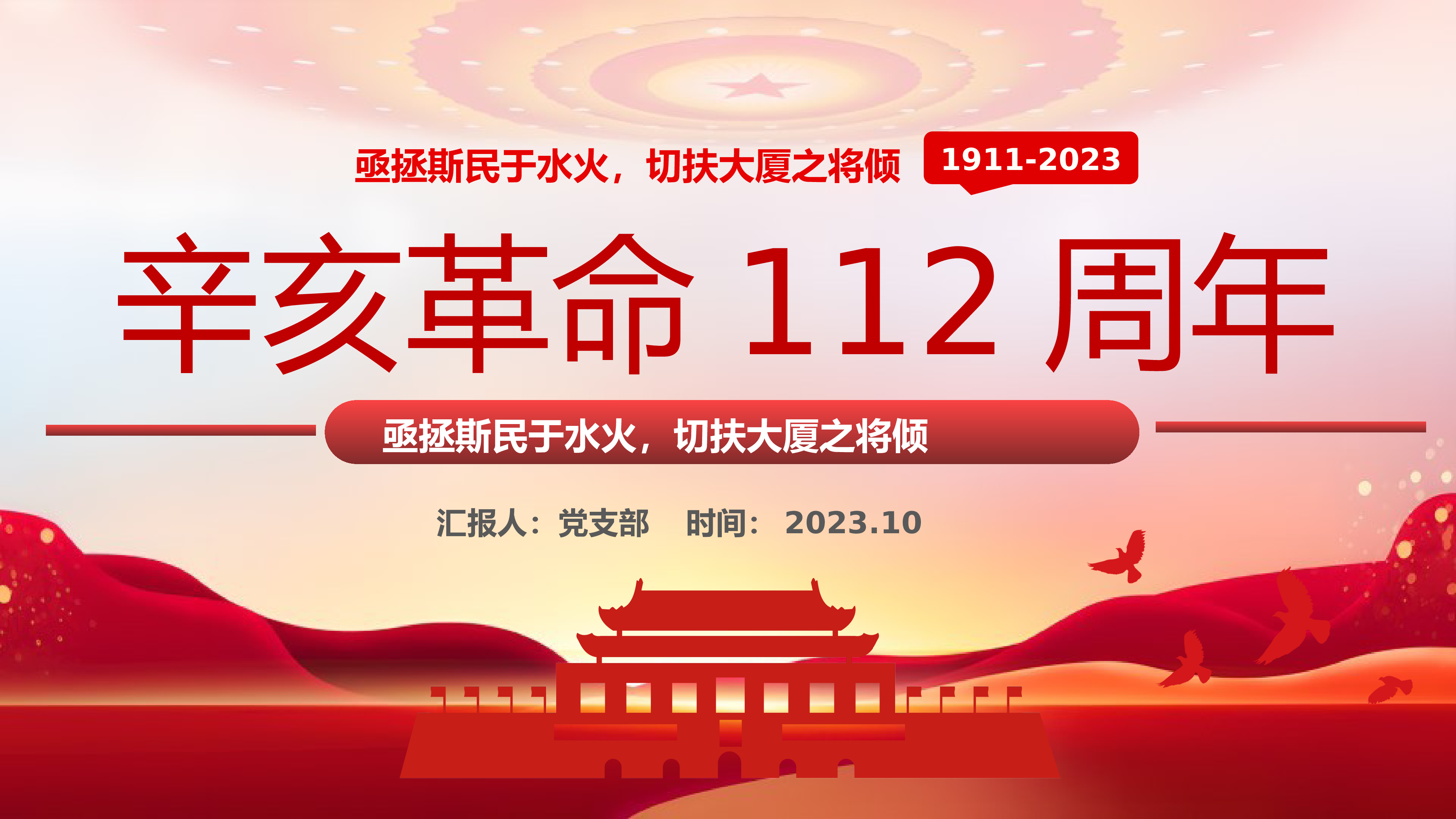 2024微党课2023辛亥革命112周年ppt模板带内容纪念辛亥革命112周年专题ppt模板课件模板下载