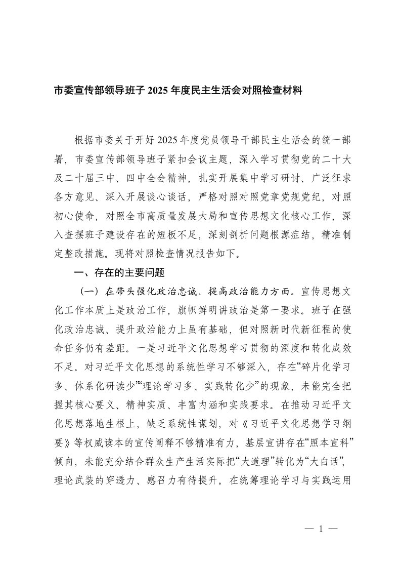 2025年度民主生活会对照检查材料民主生活会,对照检查材料,对照检查,