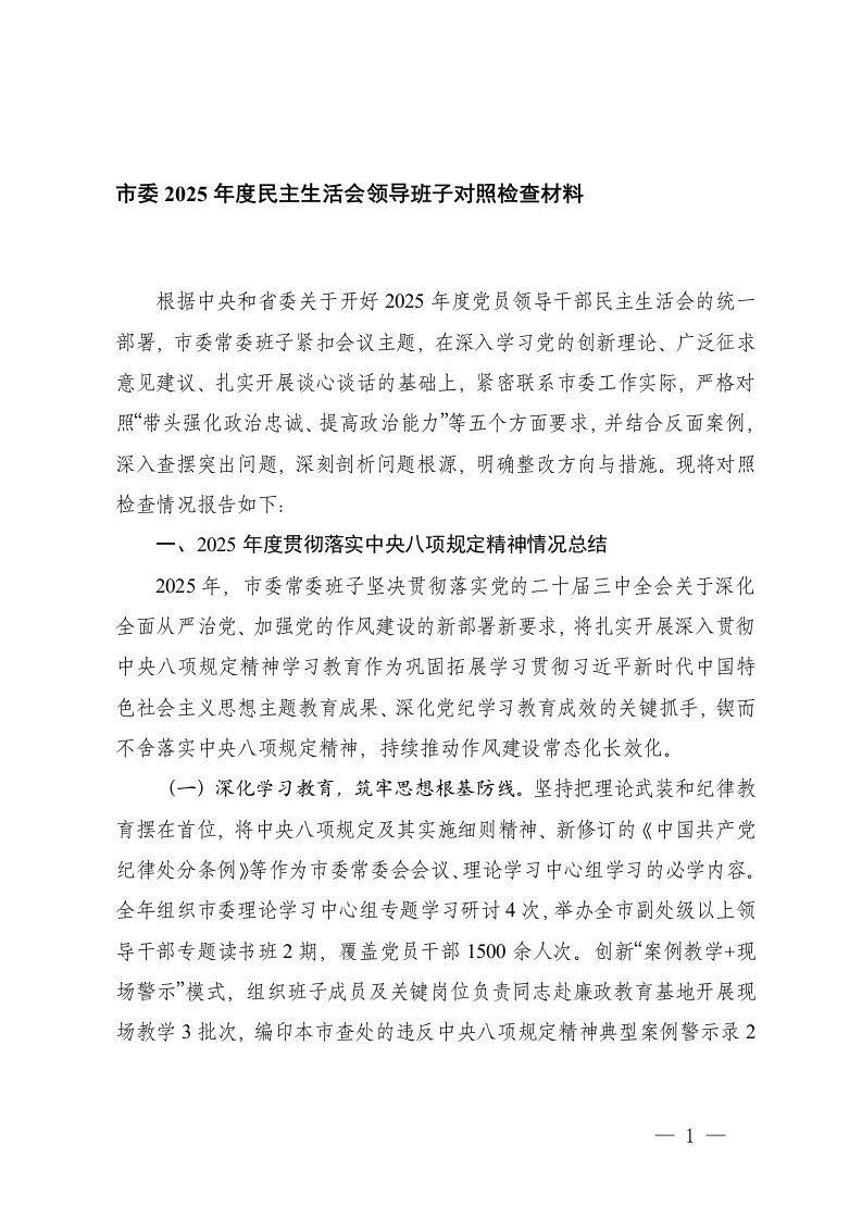 2025年度民主生活会对照检查材料民主生活会,对照检查材料,对照检查,
