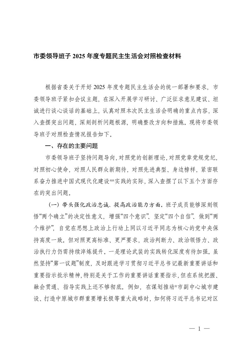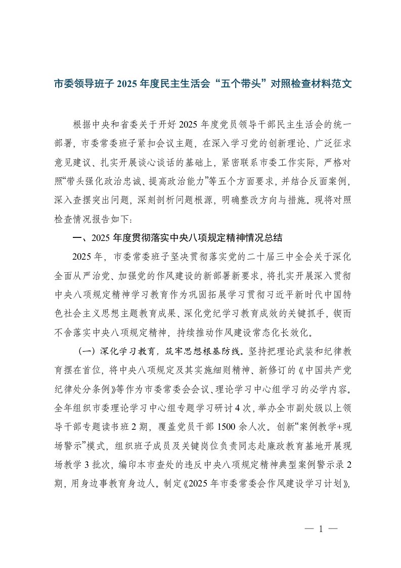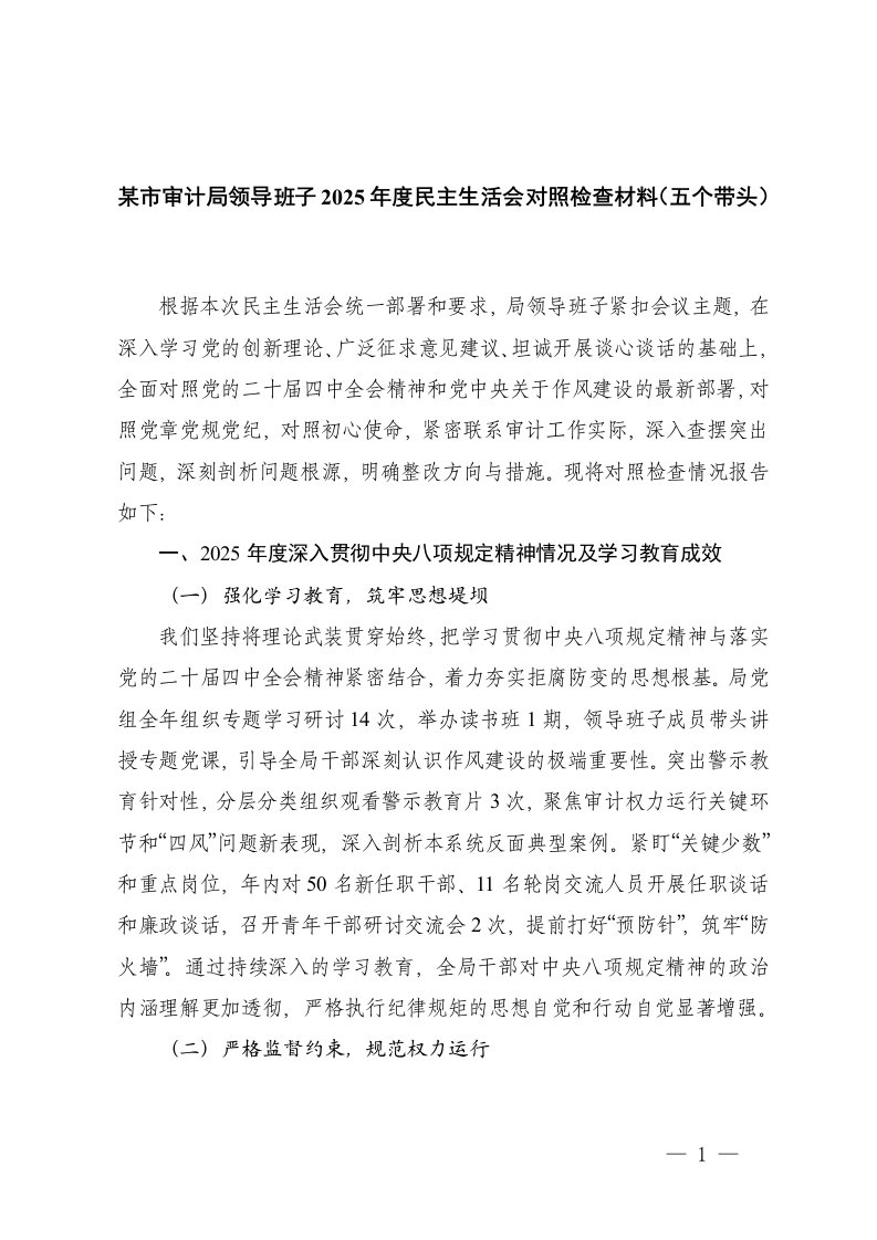 2025年度民主生活会对照检查材料五个带头民主生活会,对照检查材料,对照检查,五个带头,