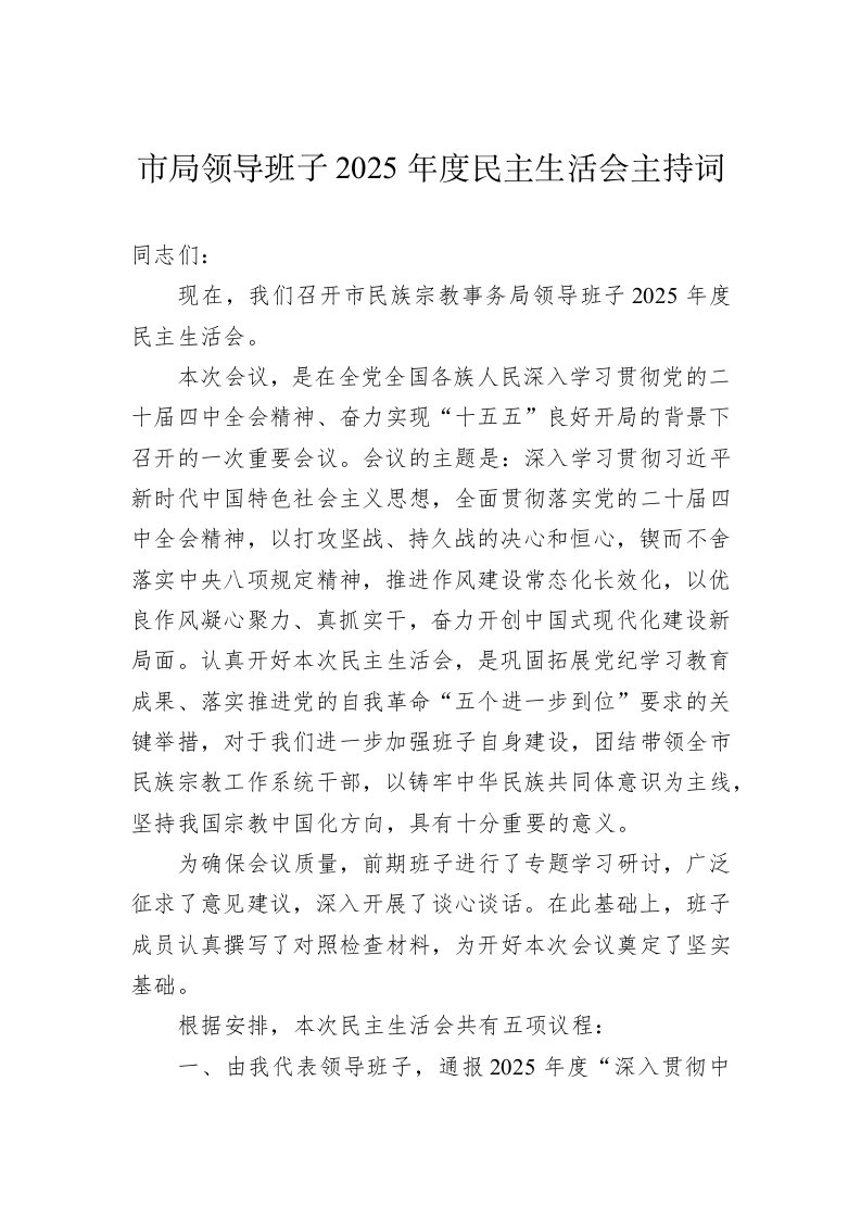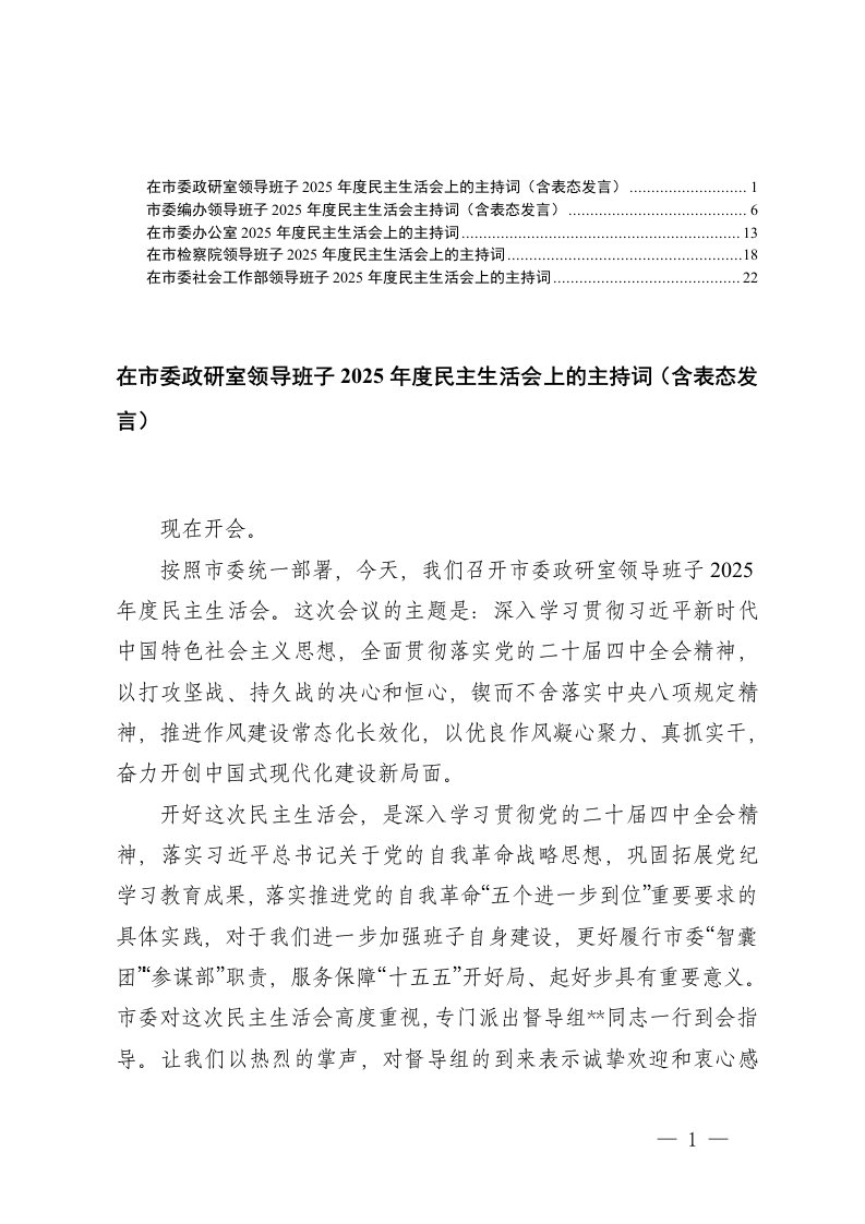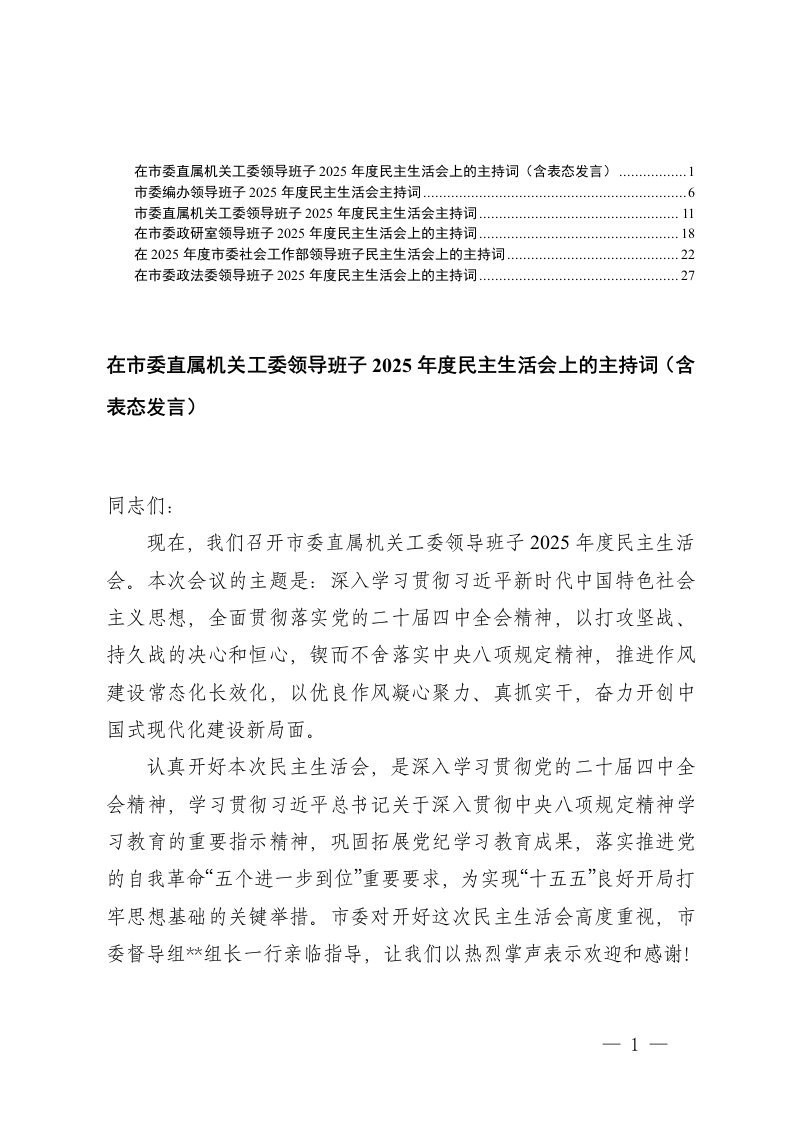 2025年度民主生活会主持词含表态发言民主生活会,表态发言,主持词,发言,