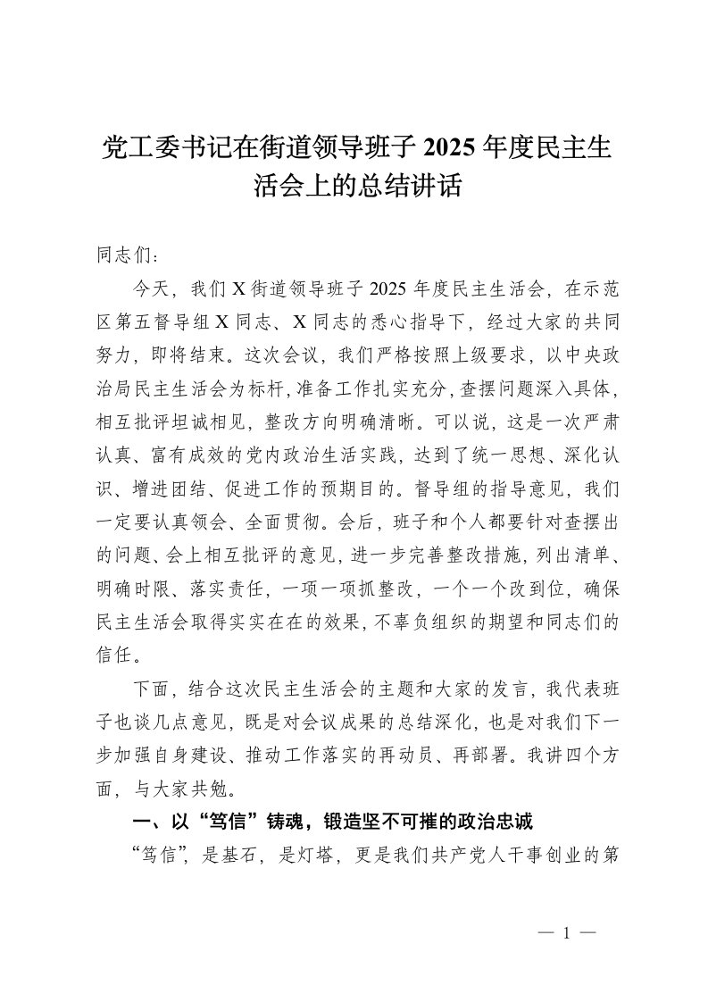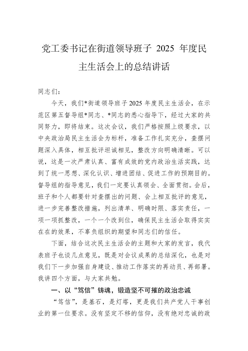 2025年度民主生活会上的总结讲话民主生活会,总结,讲话,