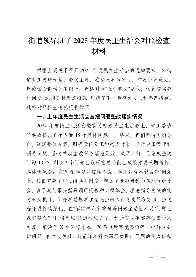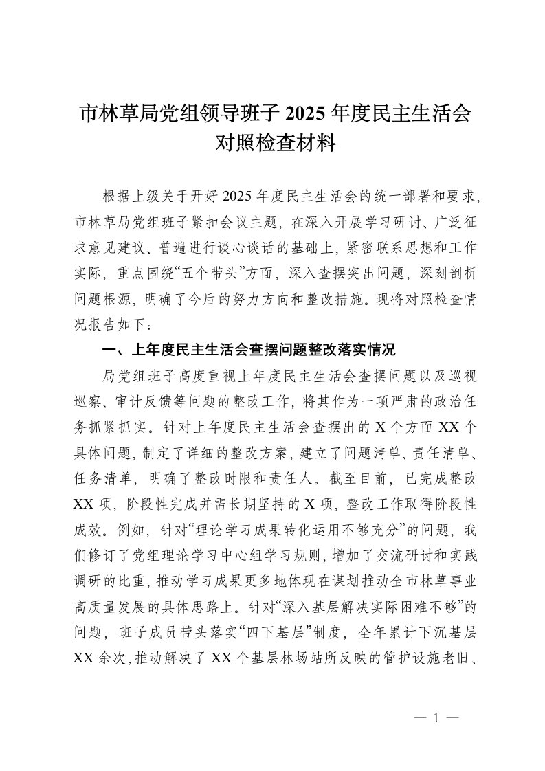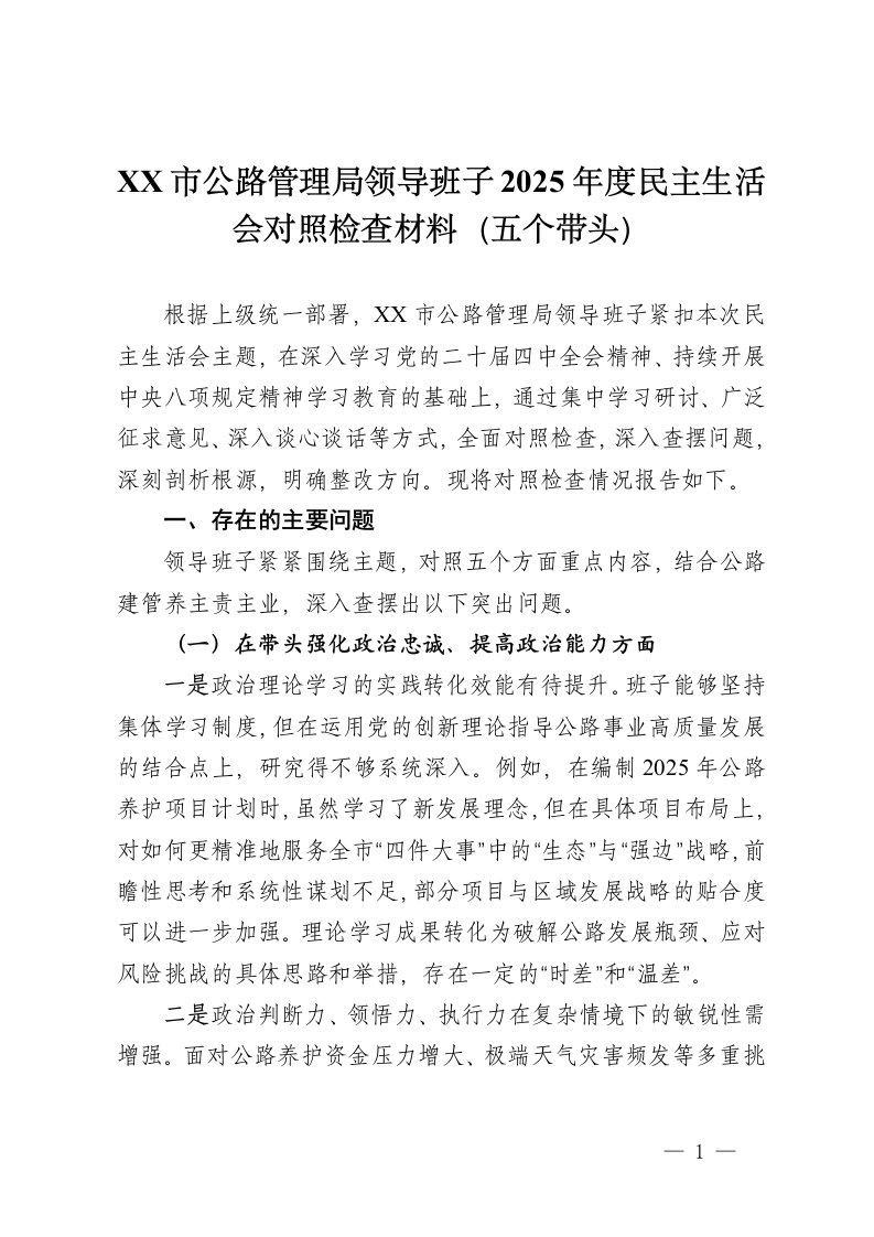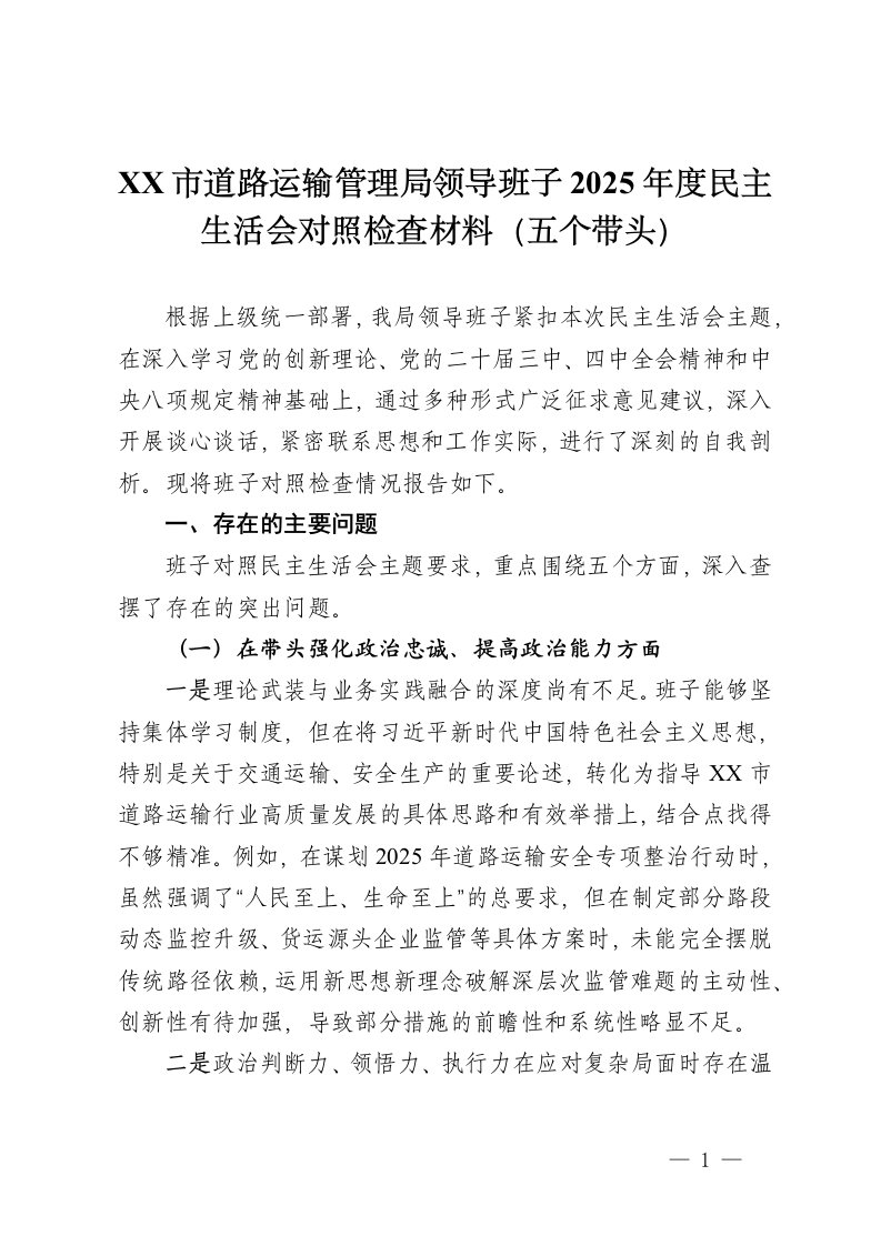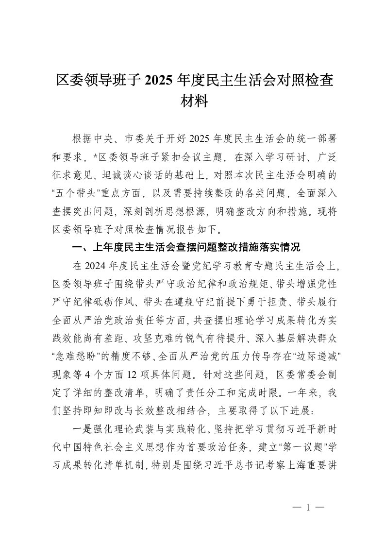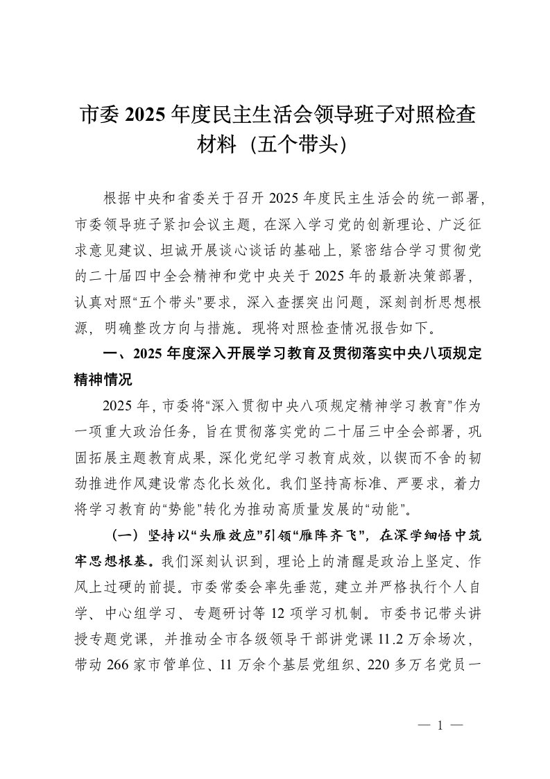2025年度民主生活会对照检查材料五个带头民主生活会,对照检查材料,对照检查,五个带头,
