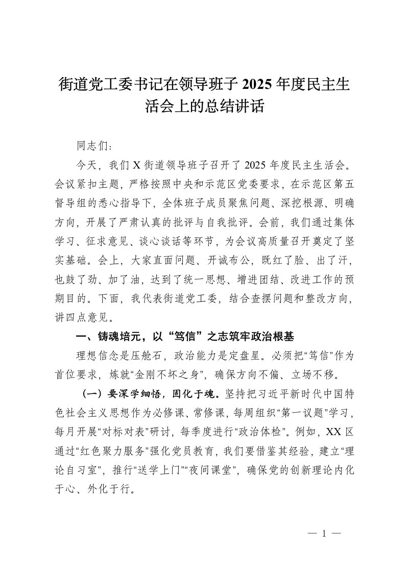 2025年度民主生活会上的总结讲话民主生活会,总结,讲话,