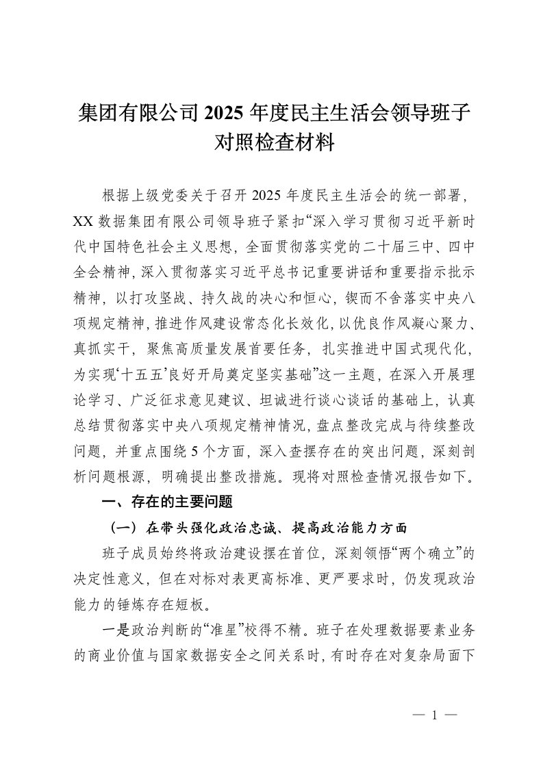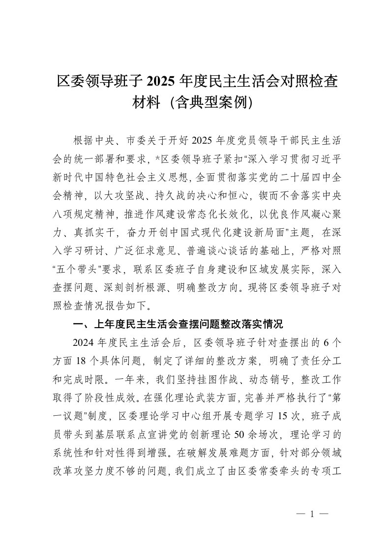 2025年度民主生活会对照检查材料含典型案例民主生活会,对照检查材料,对照检查,