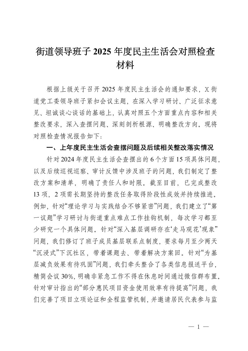 2025年度民主生活会对照检查材料民主生活会,对照检查材料,对照检查,