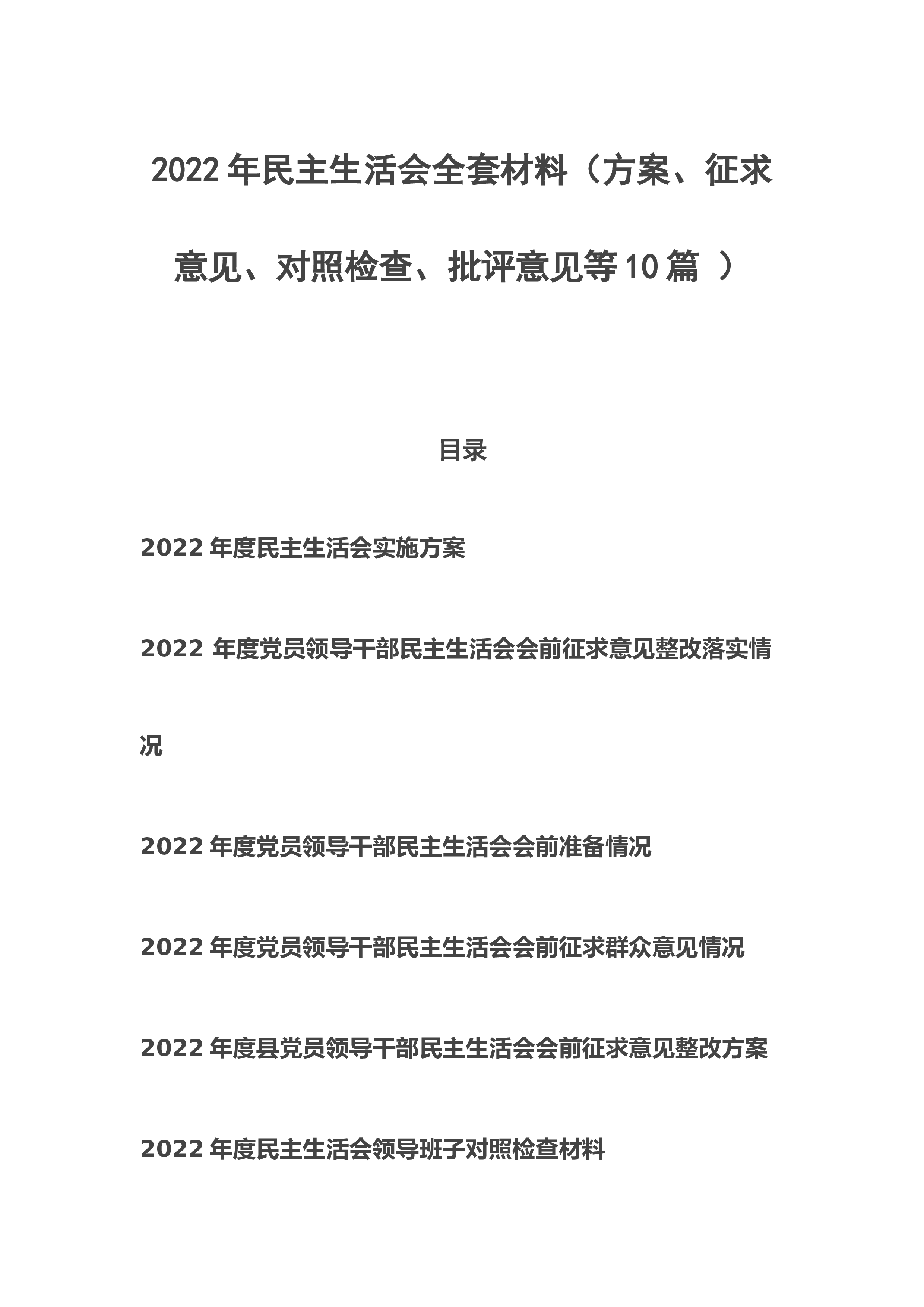 【民主生活会】2022年民主生活会(六个带头)对照检查材料10篇