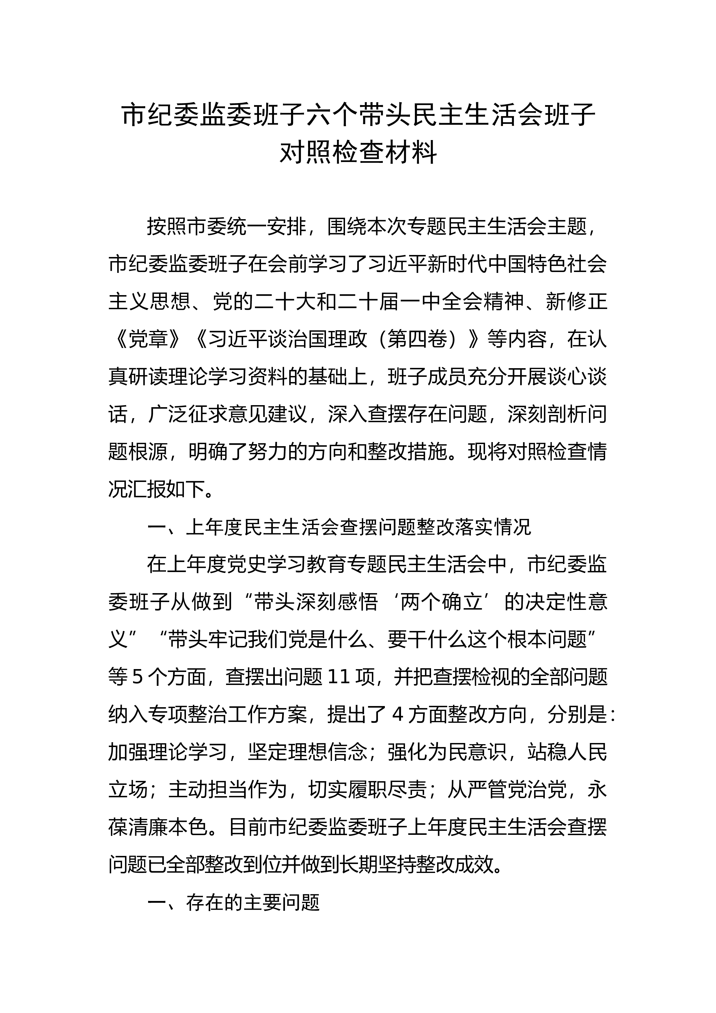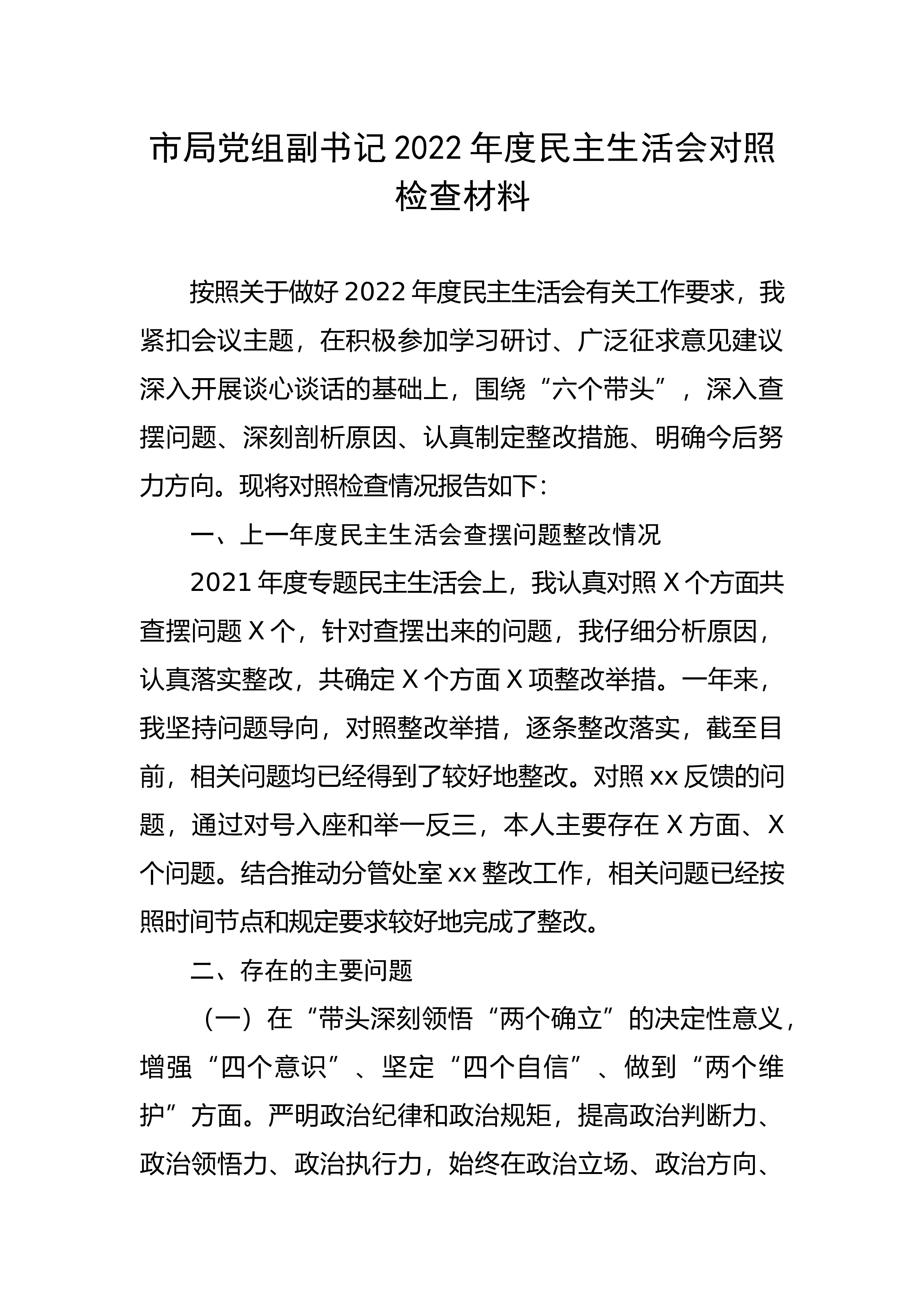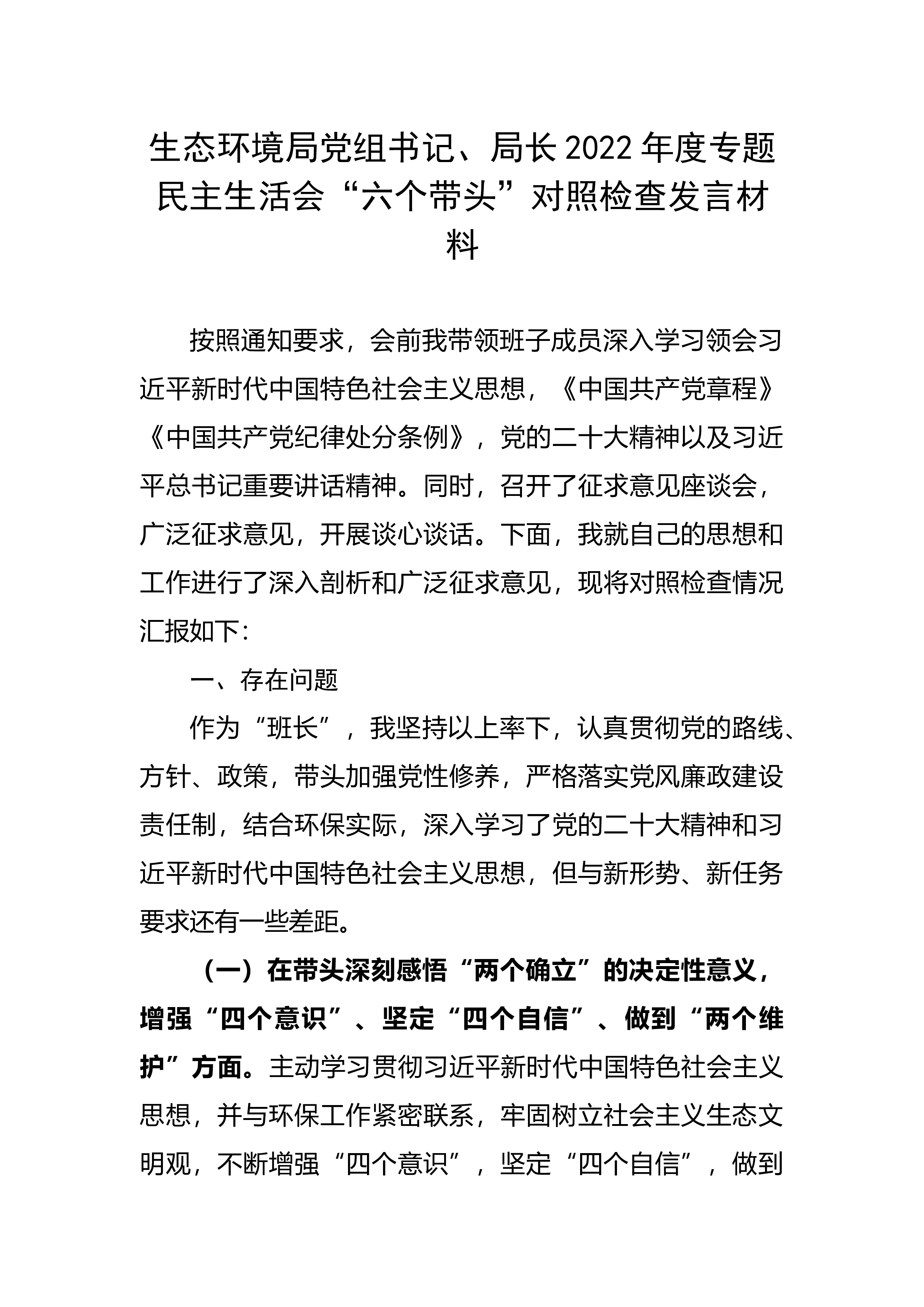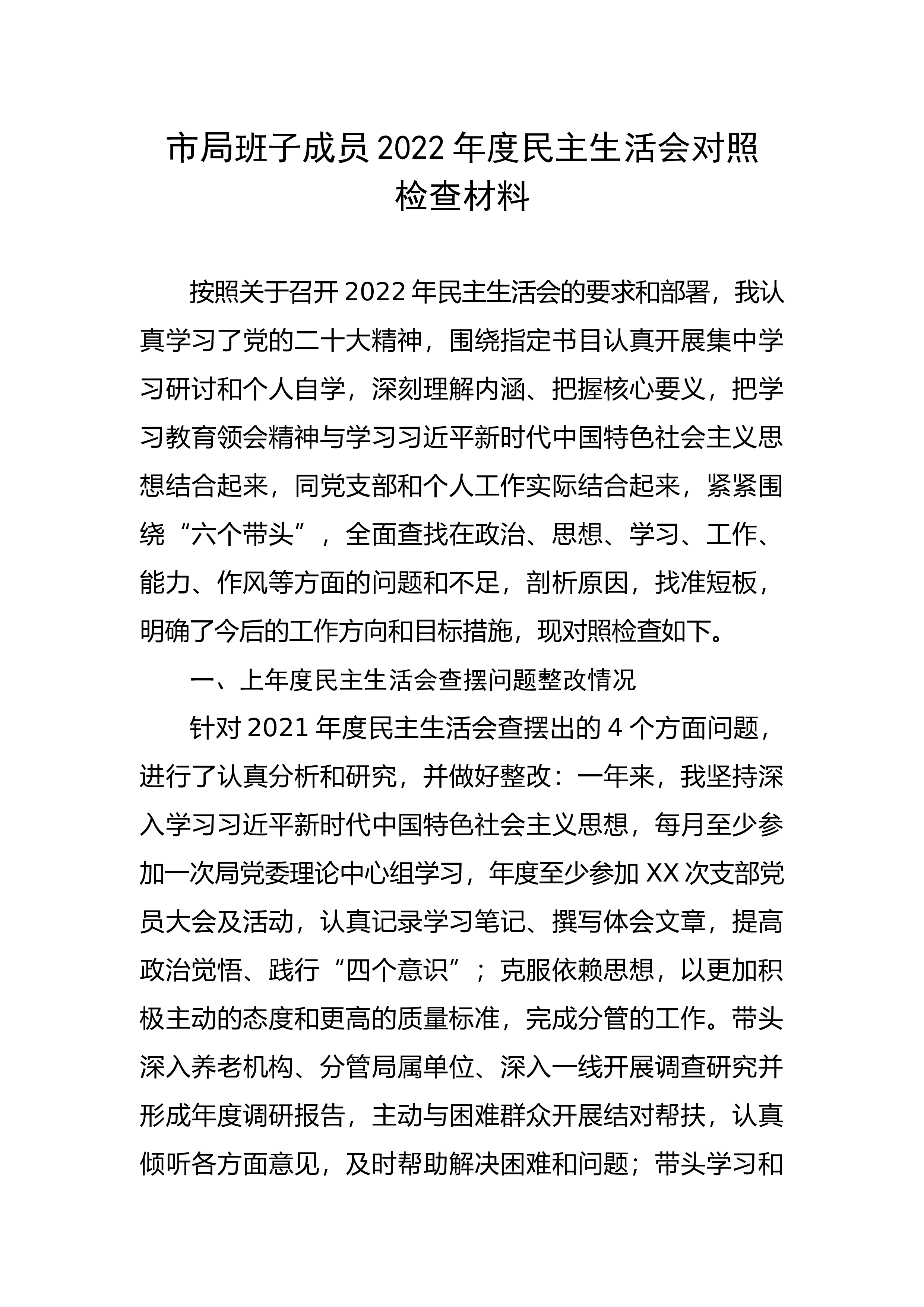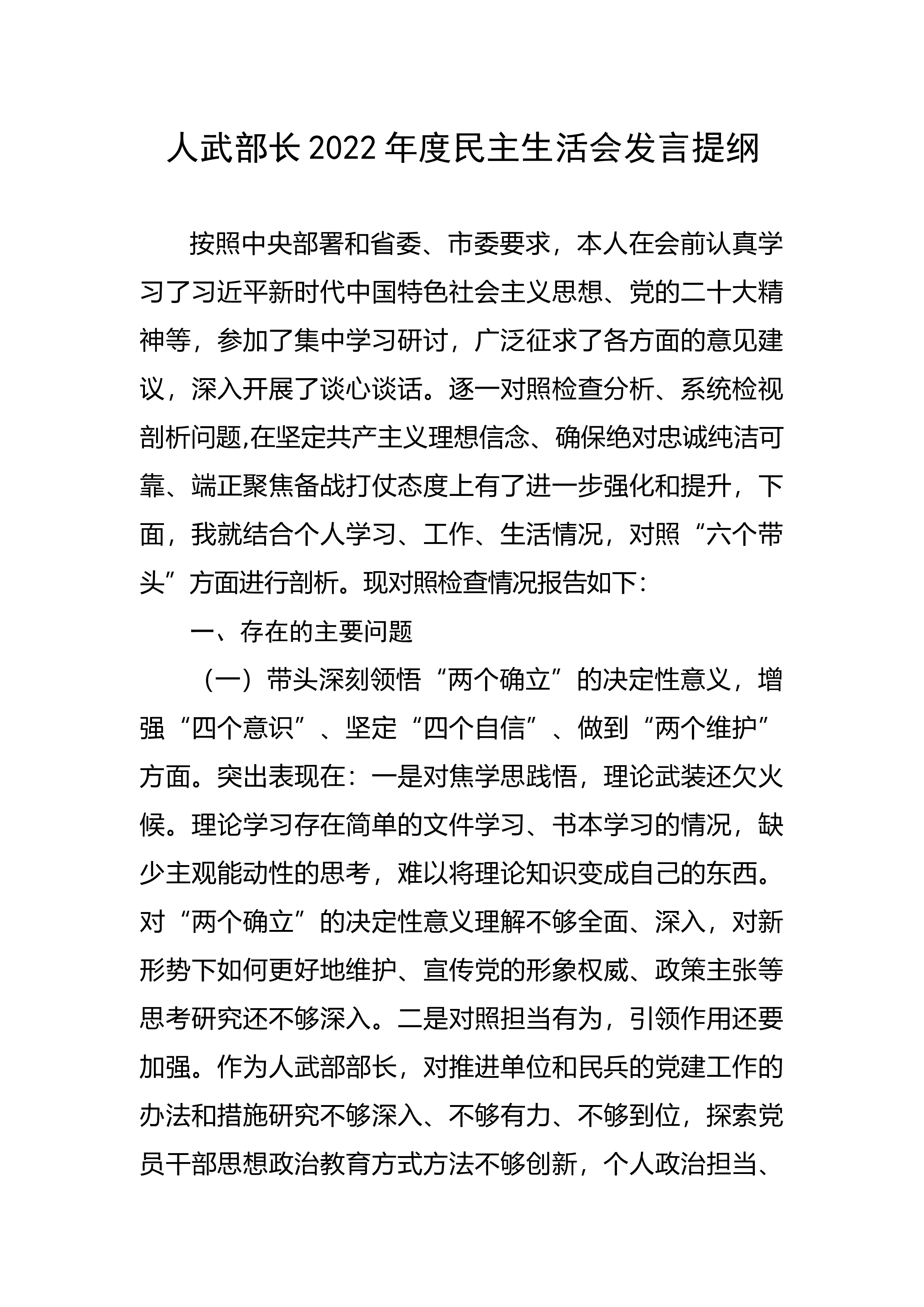 【民主生活会】人武部长2022年度民主生活会发言提纲