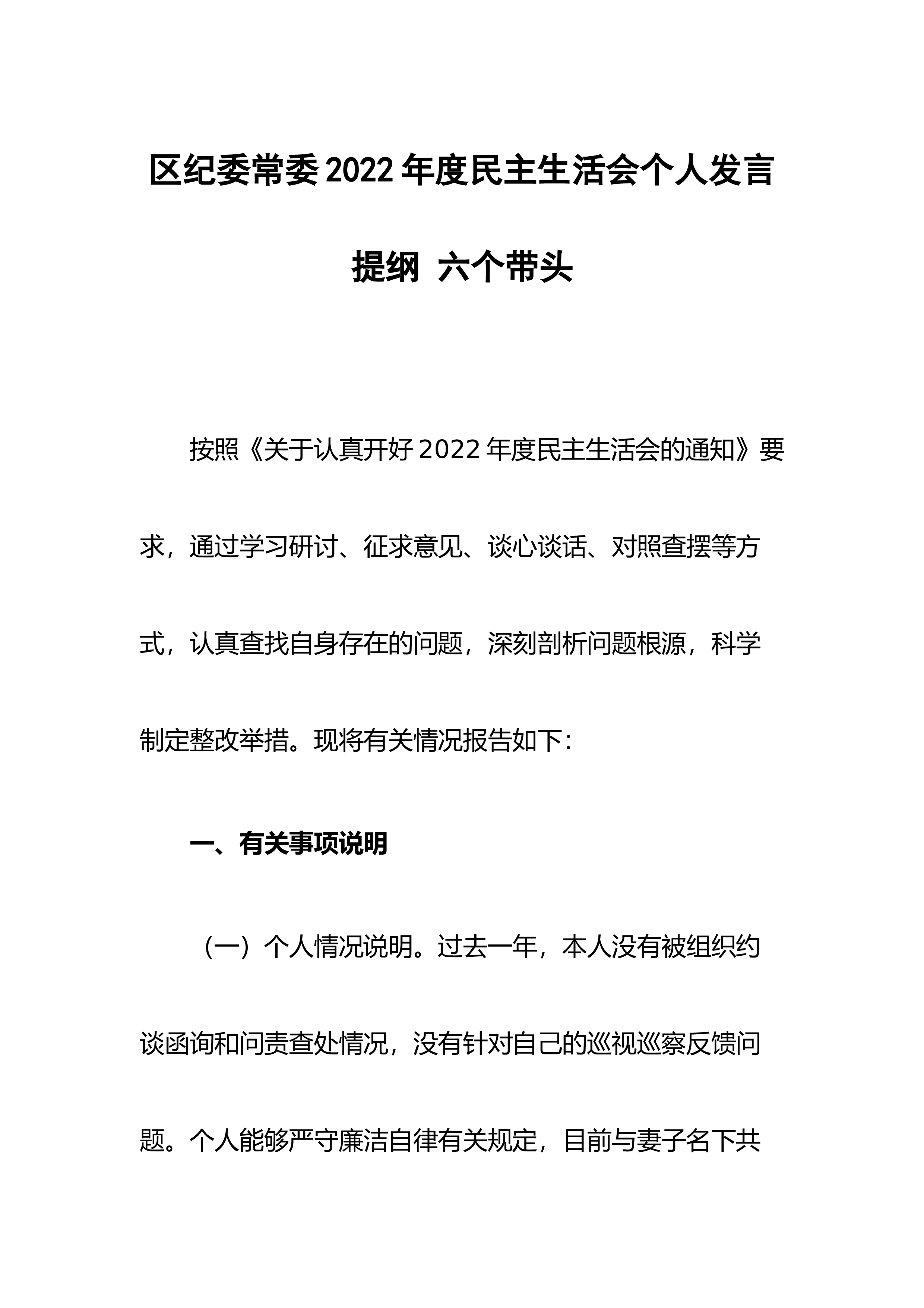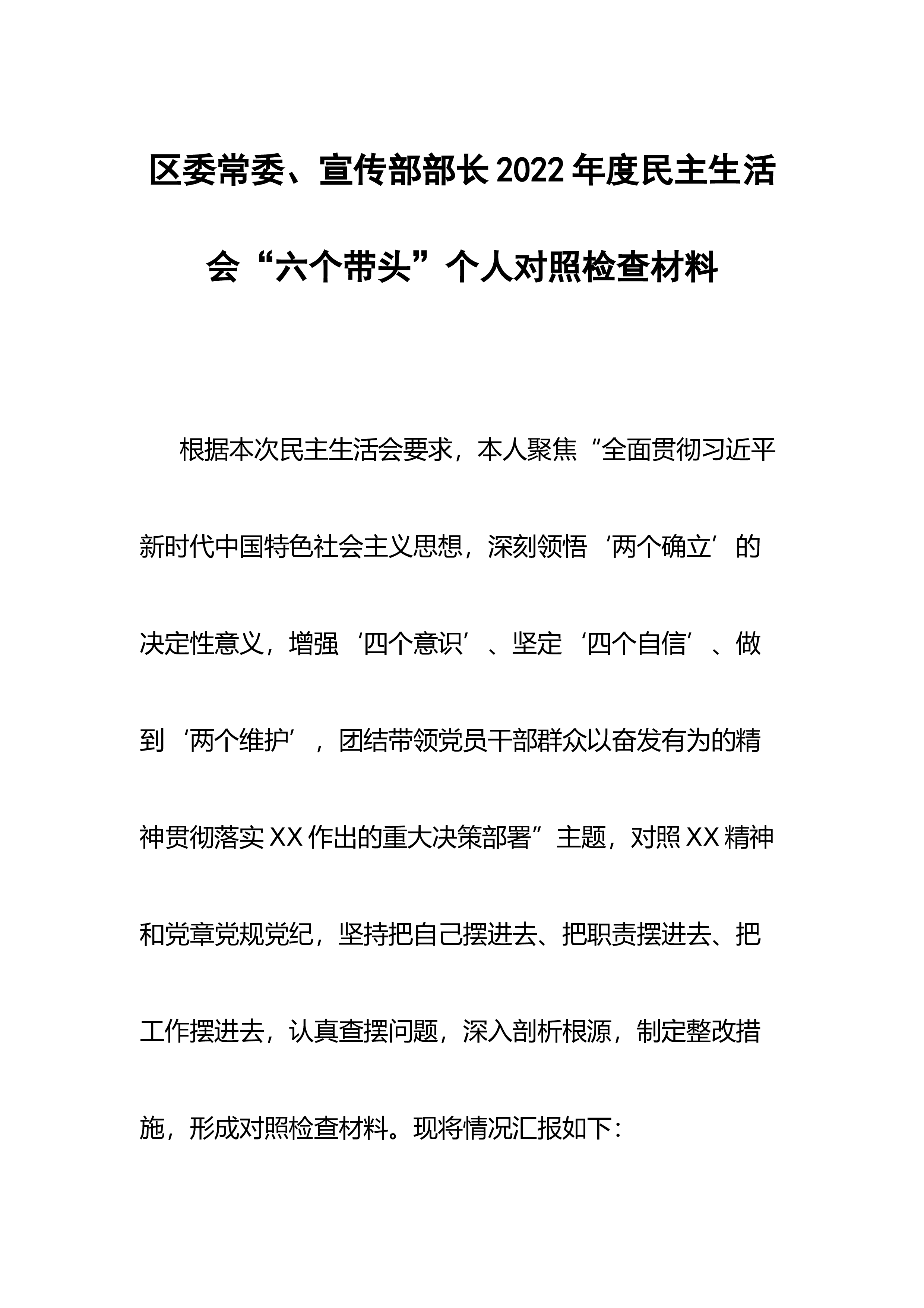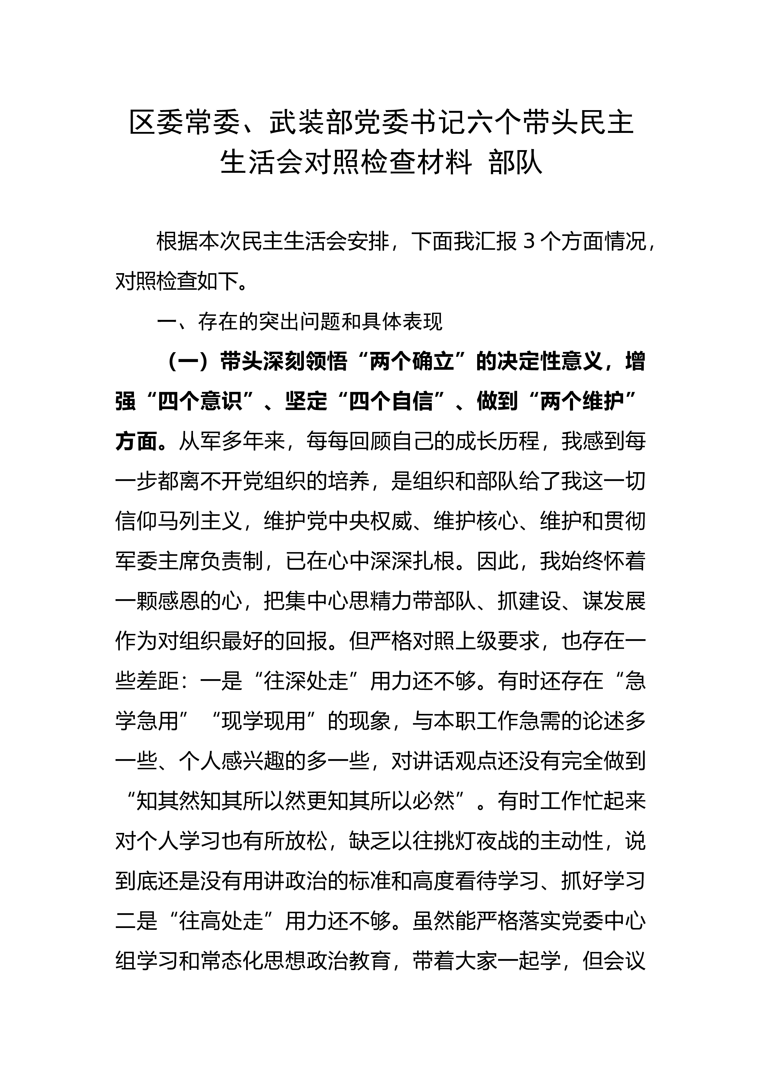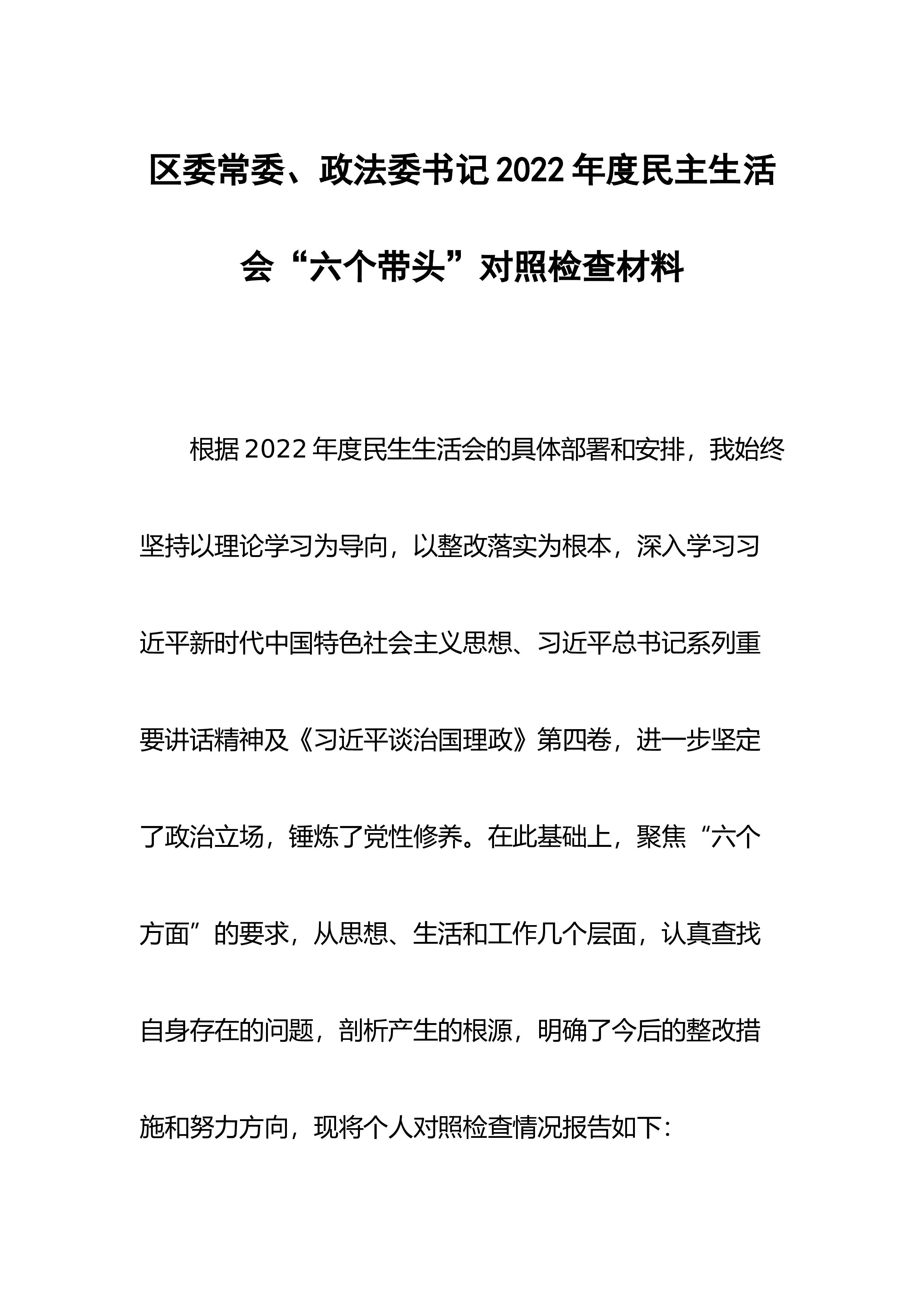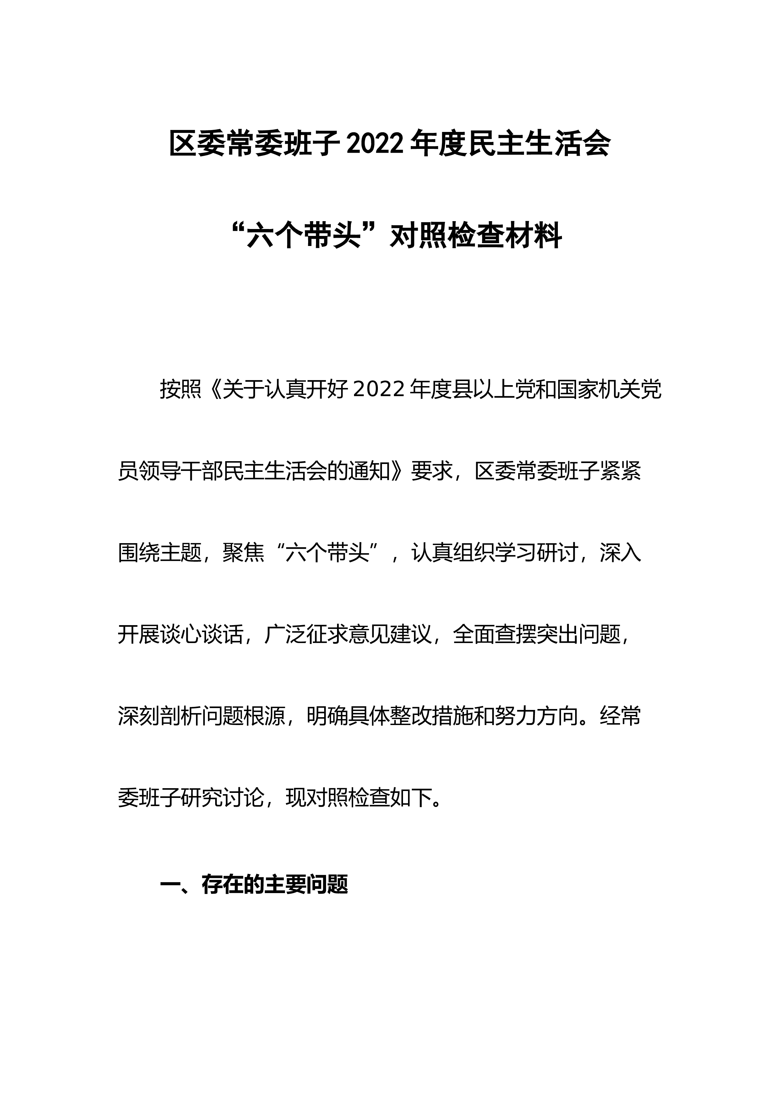【民主生活会】区委领导班子六个带头民主生活会对照检查材料