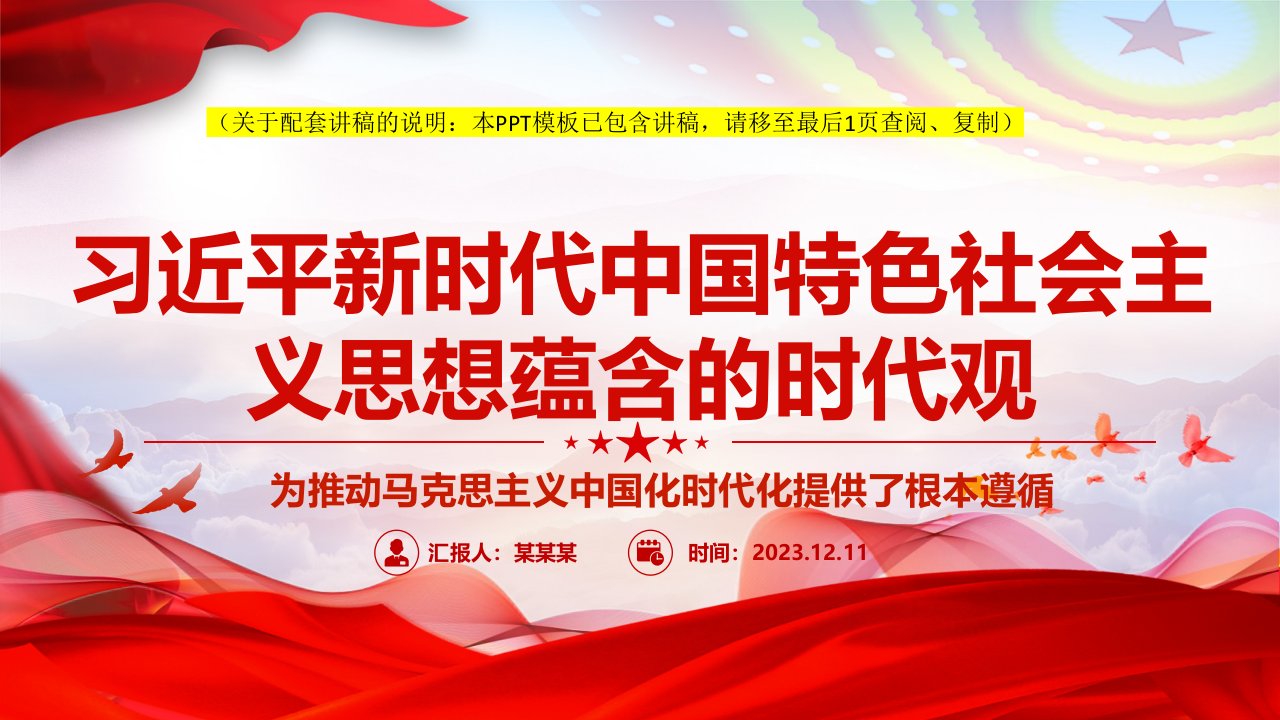 2024微党课深入学习习近平新时代中国特色社会主义思想蕴含的时代观ppt模板(含配套讲稿)为推动马克思主义中国化时代化提供了根本遵循党组织专题党课课件