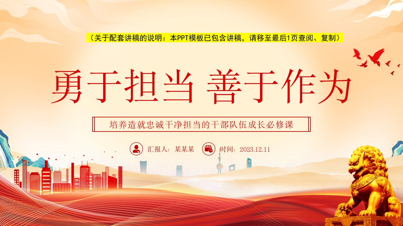 2024勇担当善作为党课ppt模板(含配套讲稿)发挥新时代年轻干部担当作为的表率作用党课课件下载