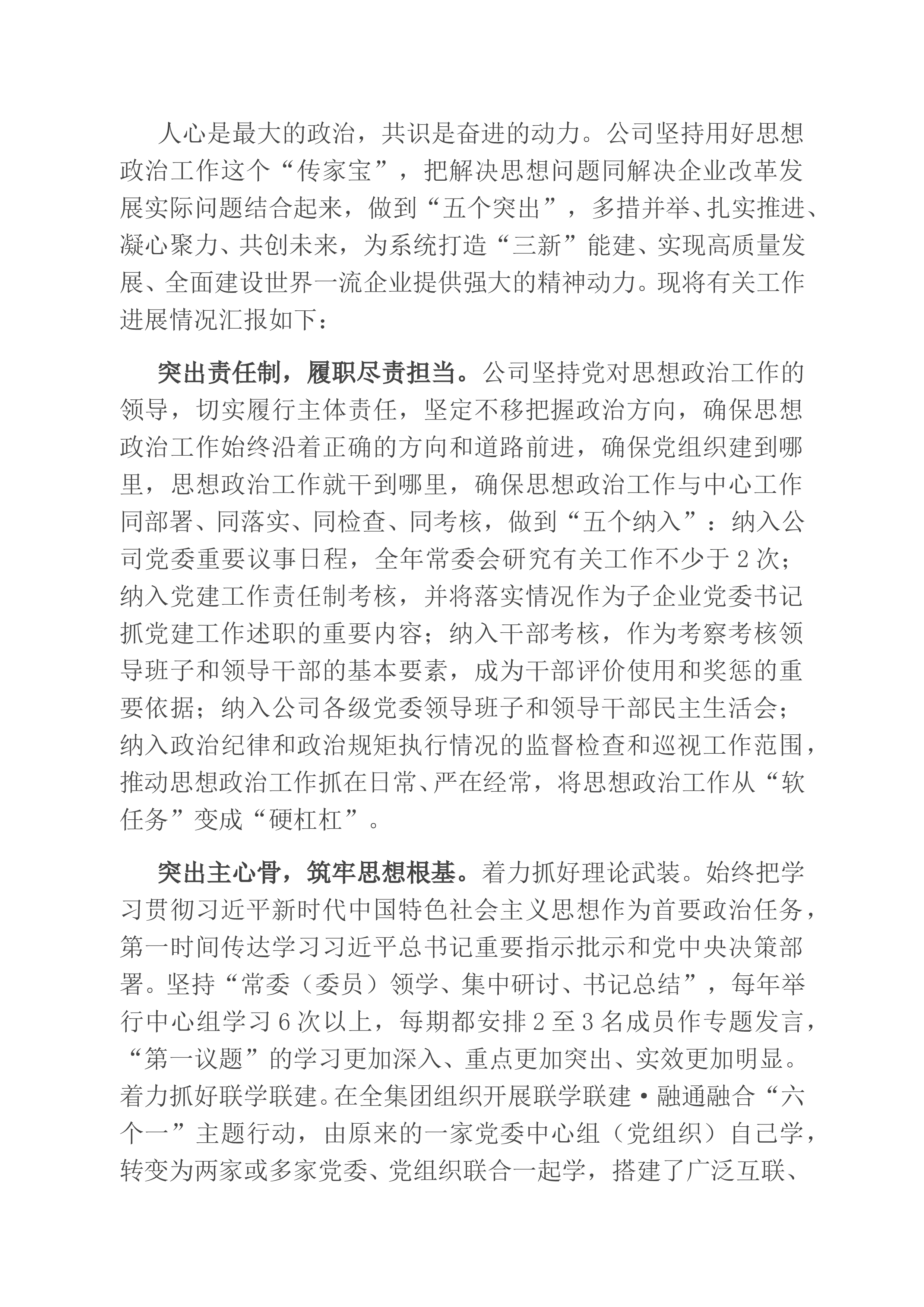 各位代表、同志们:在全党上下深入开展习近平新时代中国特色社会主义思想主T教育的关键时期,我们召开XX公司XX年中工作会议。这次会议,是公司成立X年来的一次重大盛会,既是传达贯彻集团公司年中工作会议精神,领会新思想,践行新要求,全面落实上级决策部署的工作布置会;也是系统梳理、全面总结公司各项工作的成绩和不足,分析原因,制定措施,外强经营,内抓管理,夯实发展基础的推进会;更是我们进一步统一思想,凝聚力量,明确方向,持续打造行业先进国企投资公司的工作动员会。现在,我向大会作行政工作报告,请参会代表审议,并请列席会议的同志提出意见和建议。一、今年上半年主要取得的成绩上半年来,我们不忘初心、凝心聚力,牢...