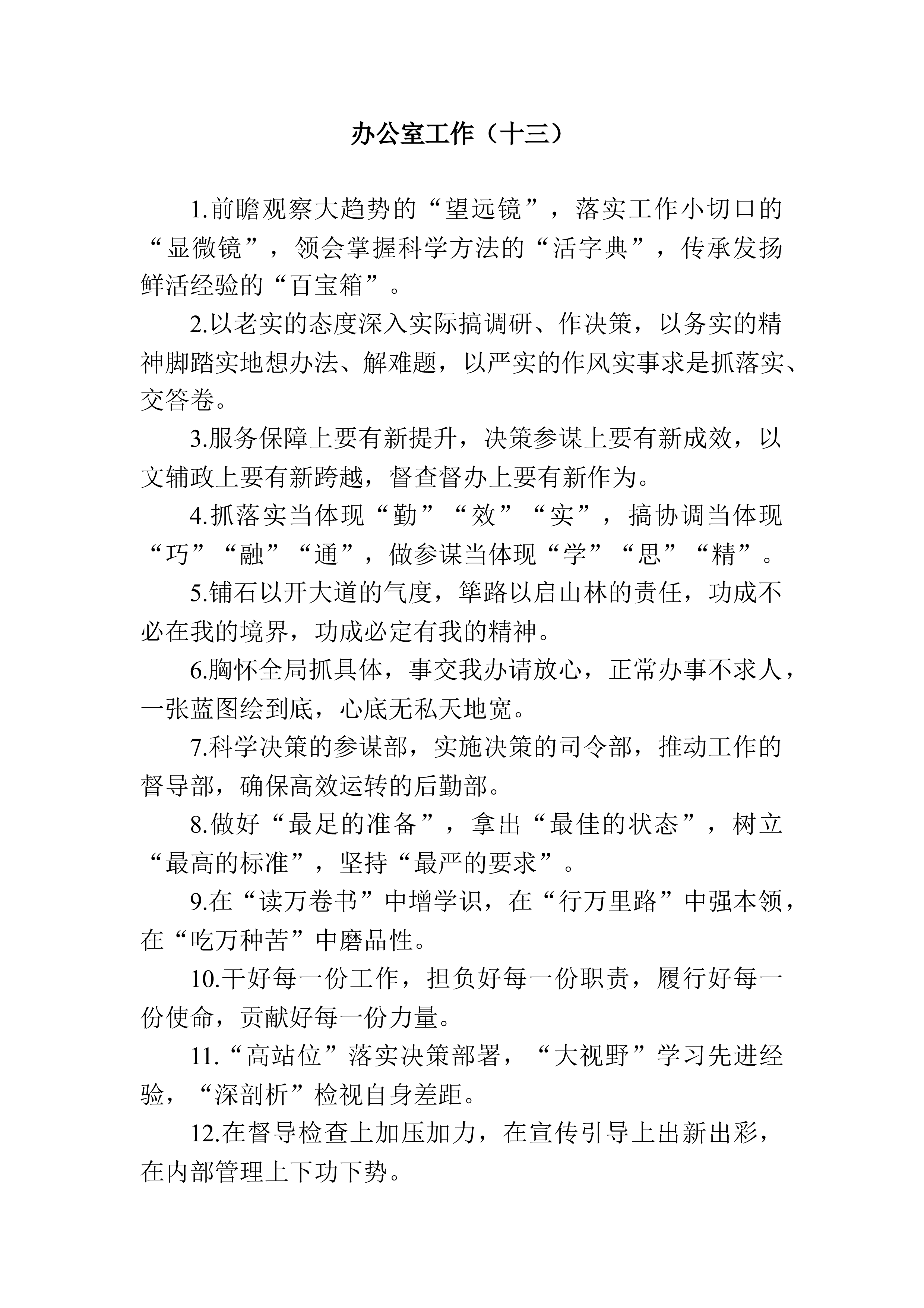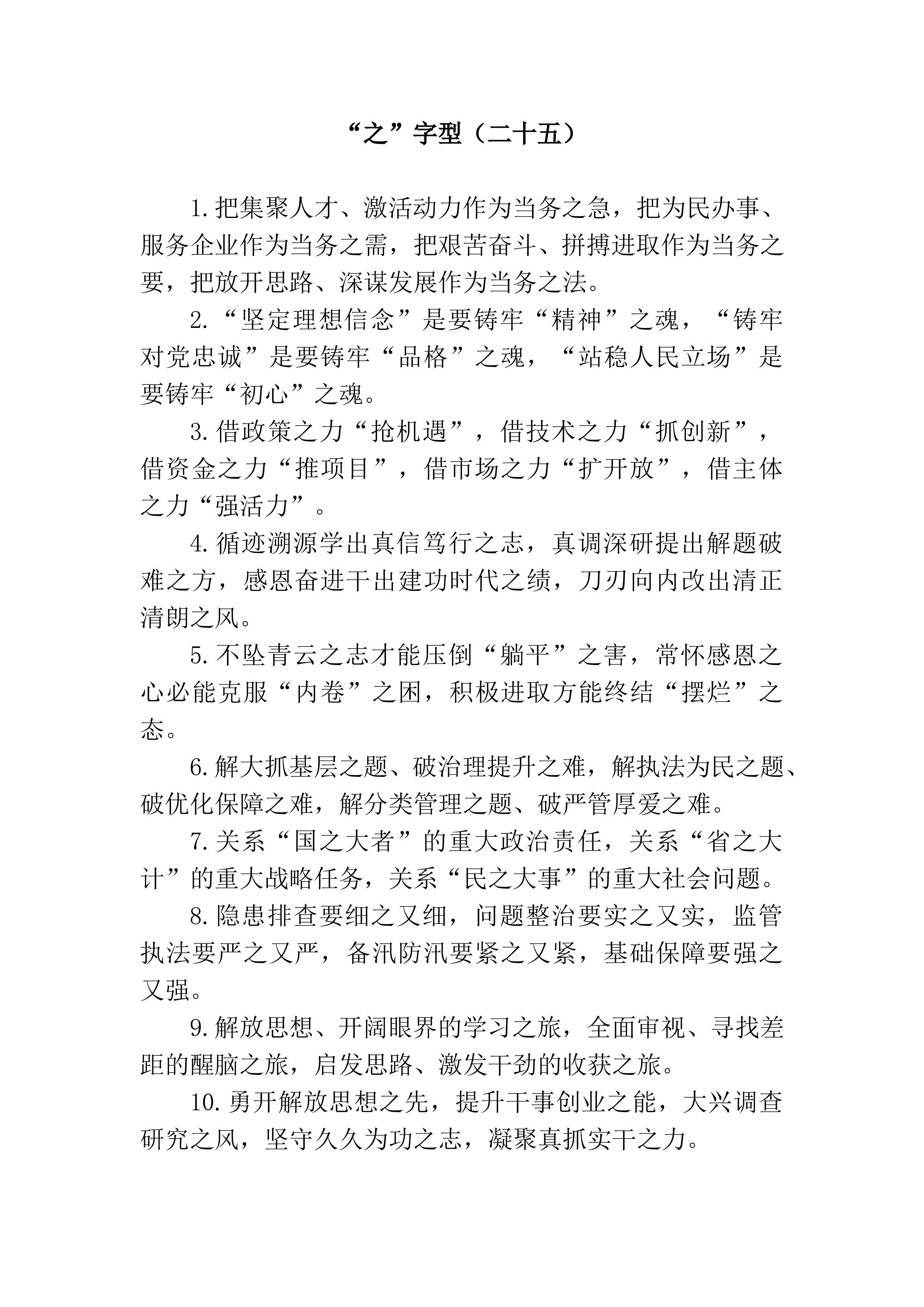 1.比理论武装深不深,看忠诚根基牢不牢;比工作本领强不强,看实干能力好不好;比为民情怀浓不浓,看工作业绩实不实。2.看想不想为,比境界标准;看会不会干,比思路办法;看能不能行,比工作实绩;看敢不敢拼,比作风状态。3.在竞赛中看出差距不足,在比较中剖析问题根源,在比武中启发工作思路,在切磋中寻找破题路径。4.在重点工作中实现突围突破,在先行先试中树立标准标杆,在比学赶超中实现争先进位。5.以“抢”的意识大干快上,以“战”的姿态硬核担当,以“拼”的精神聚力突破。6.统一思想的精神洗礼之旅,启迪思想的寻路问道之旅,解放思想的比学赶超之旅。7.比状态拼干劲,比实绩拼位次,比贡献拼占比,比担当拼服务,比...