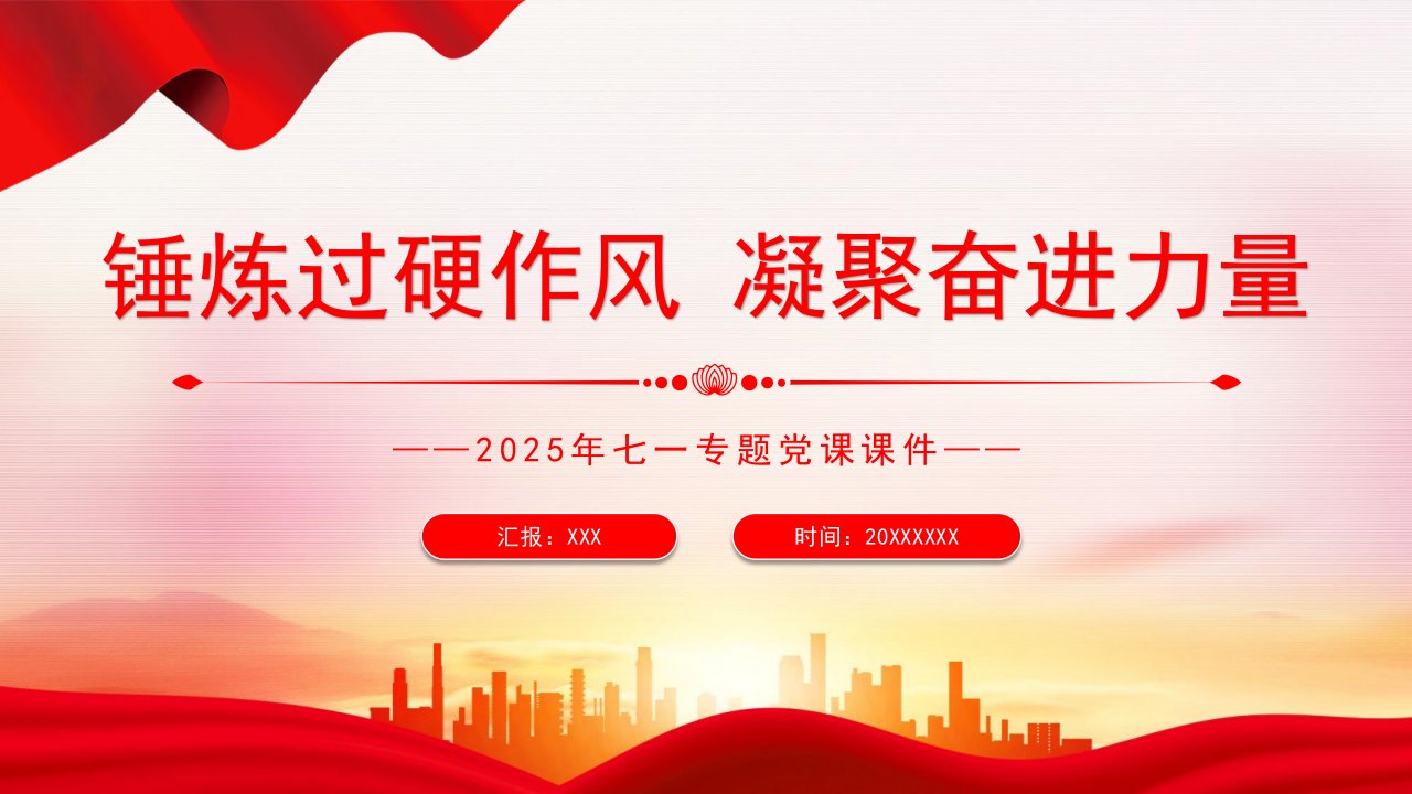 建党ppt模板」锤炼过硬作风凝聚奋进力量党课ppt模板(带内容)