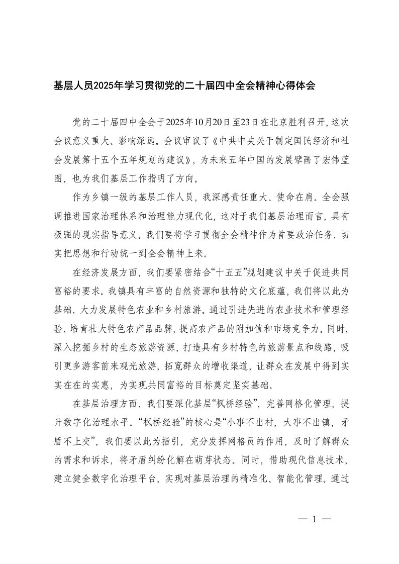 基层人员2025年学习贯彻党的二十届四中