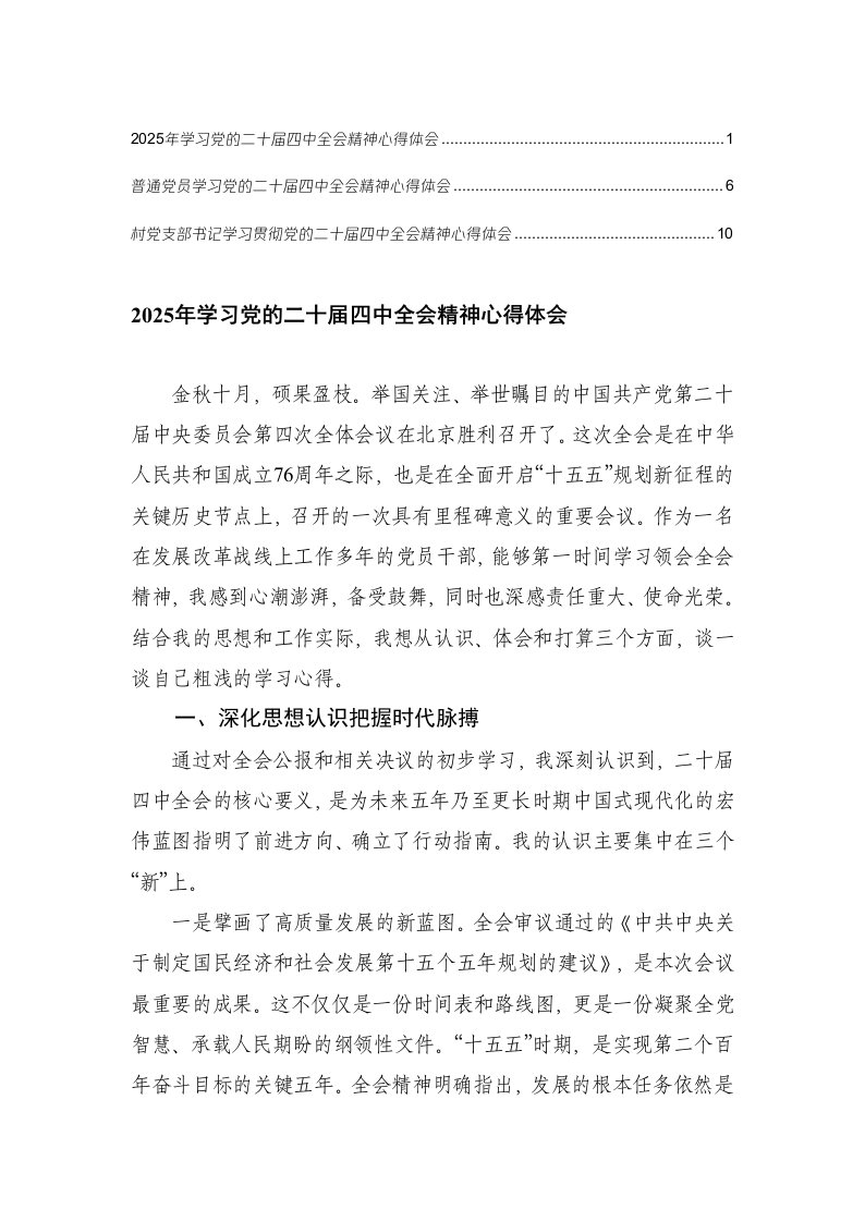 普通党员党委书记部长2025年学习党的二十届四中