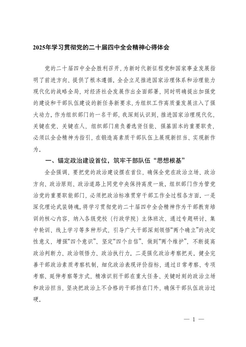 领导干部2025年学习党的二十届四中