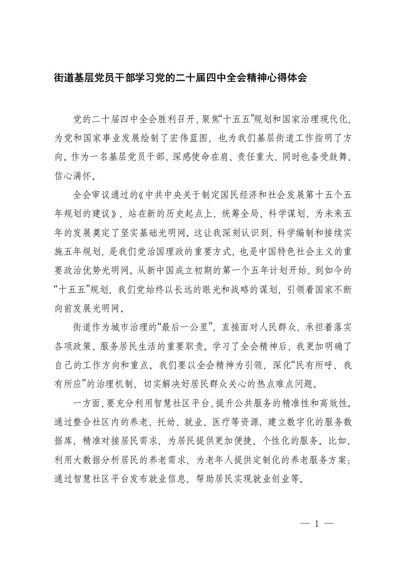 街道基层党员干部学习党的二十届四中