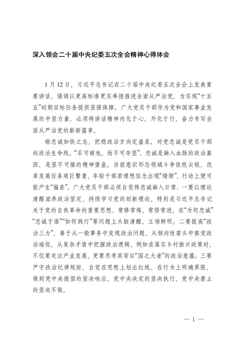 2026年镇党委书记关于学习贯彻二十届中央纪委五次
