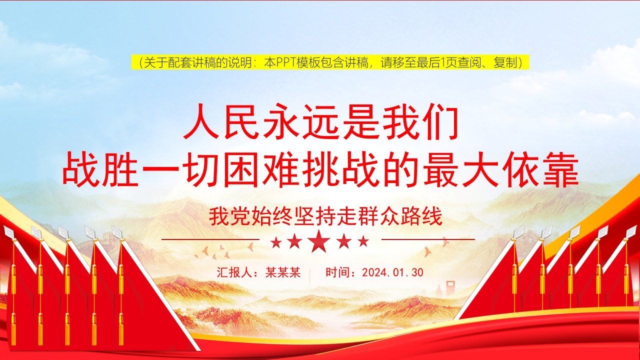 2024人民是决定党和国家前途命运的根本力量党课ppt模板(含配套讲稿)始终坚持走群众路线专题党课