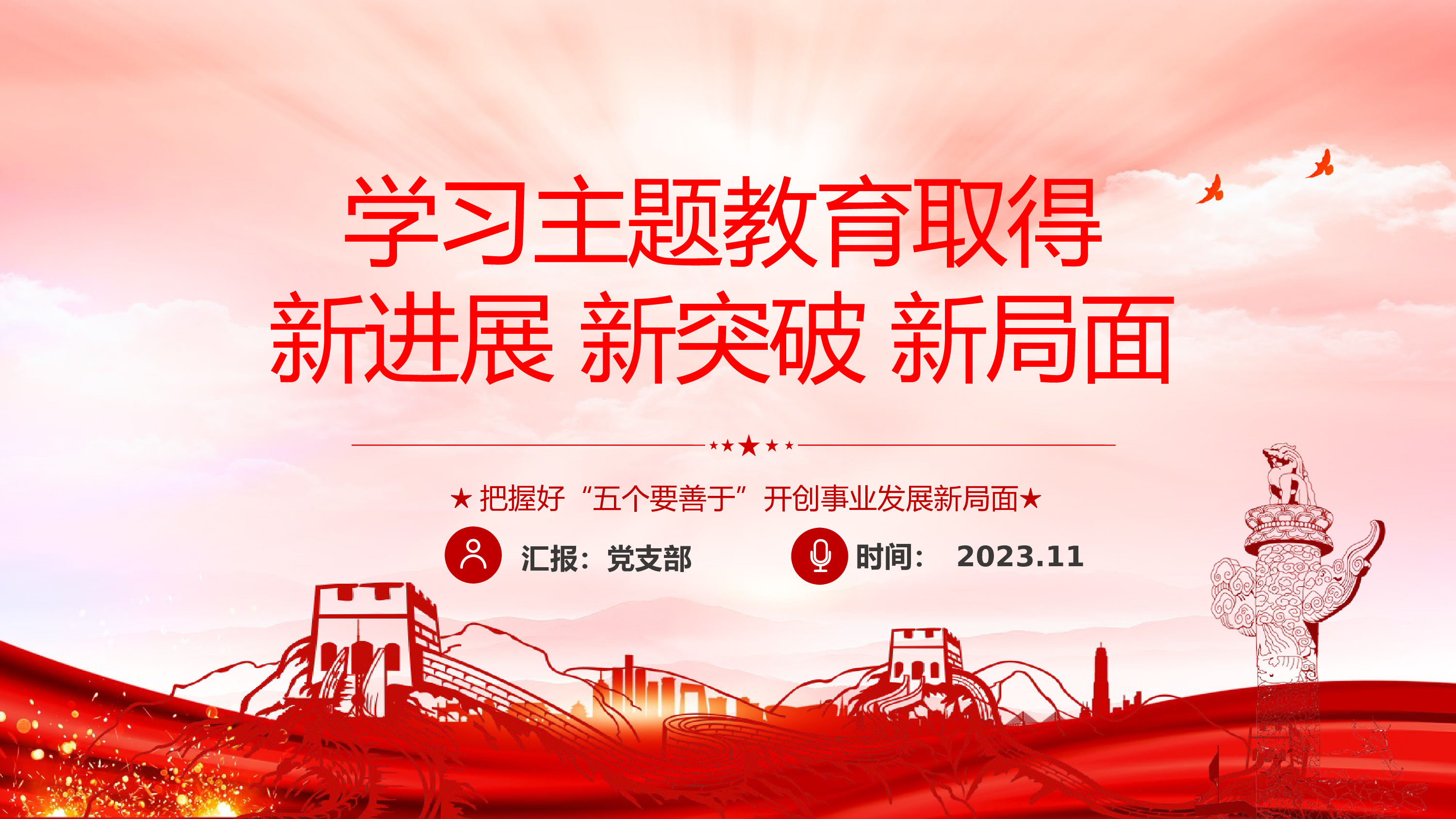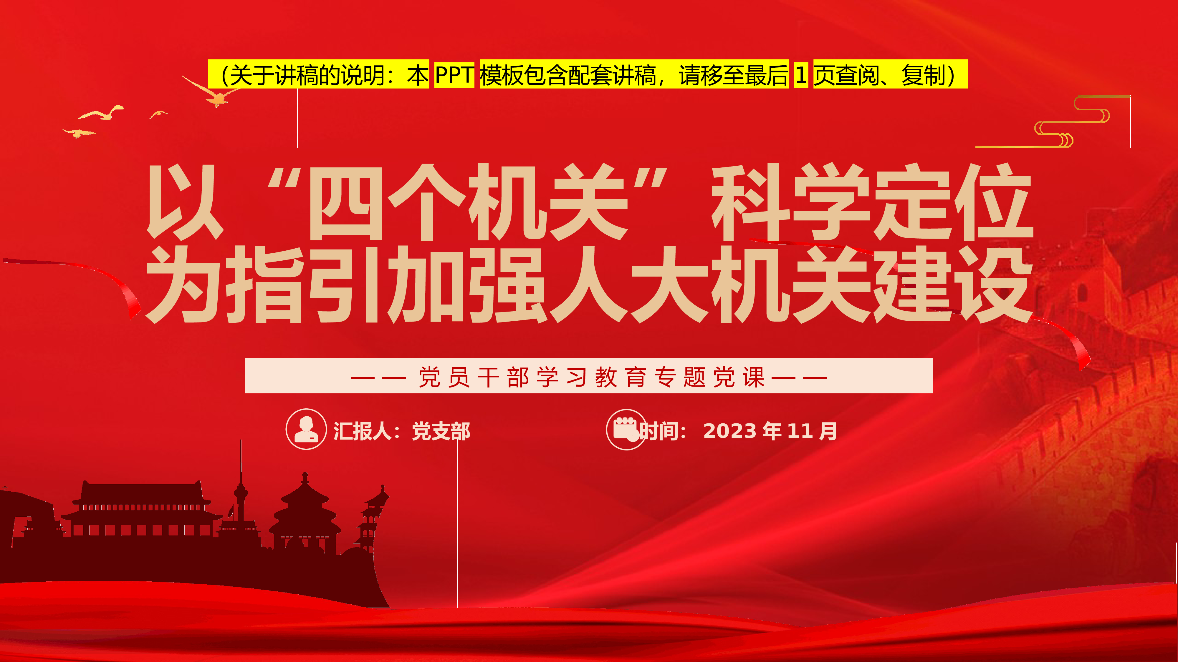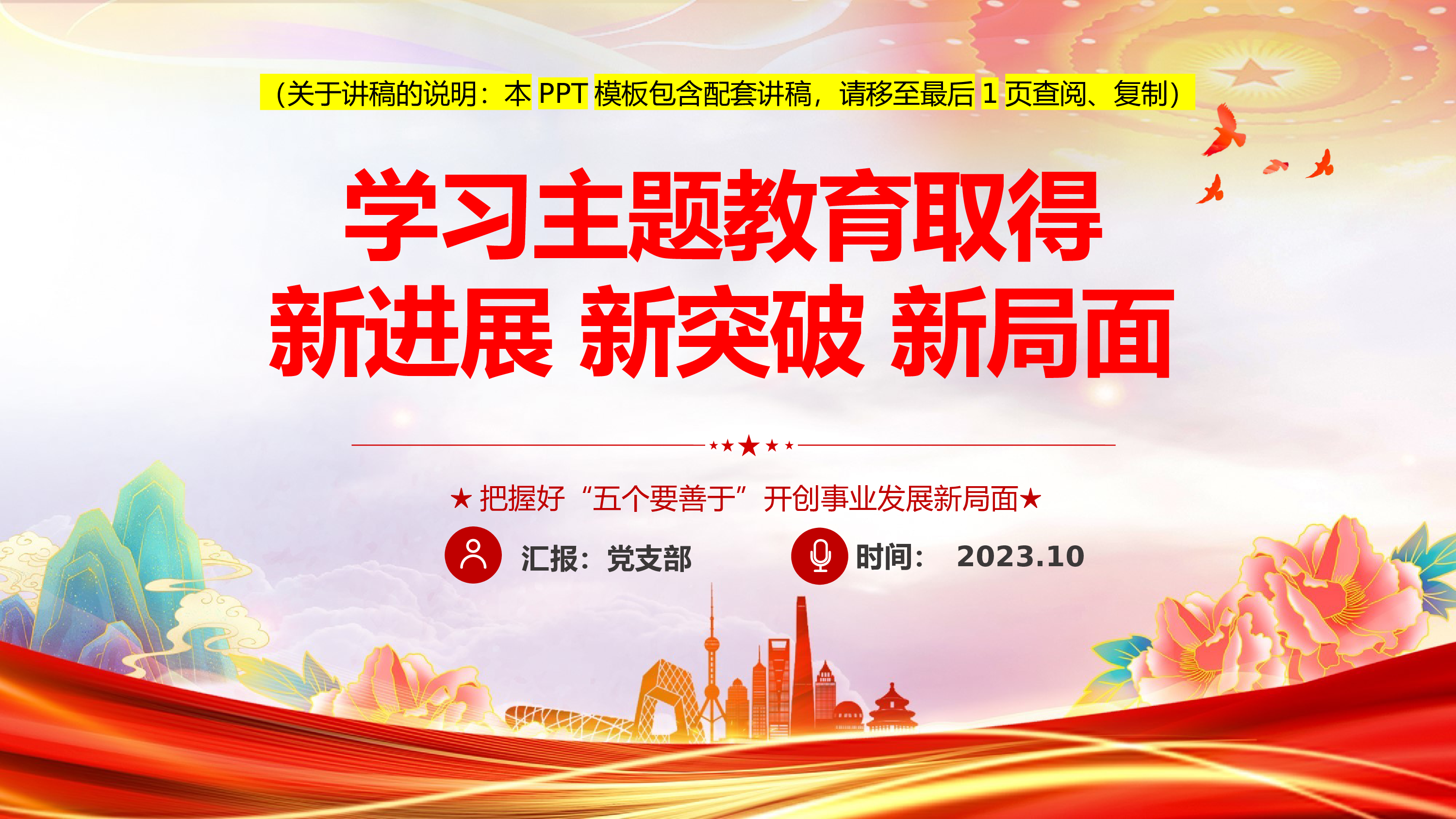 日期:2023年11月汇报人:党支部坚持以人民为中心的根本立场深入学习了解习近平经济思想(关于讲稿的说明:本PPT模板包含配套讲稿,请移至最后1页查阅、复制)前言QIANYAN习近平经济思想坚持马克思主义政治经济学的基本原理和方法,在适应新形势、解决新问题、应对新挑战中形成了一系列具有鲜明时代性和创造性的理论成果,为丰富发展马克思主义政治经济学作出了重要原创性贡献,创造性地提出坚持以人民为中心的发展思想是其中一个重要方面。党的十八大以来,我们党深入贯彻以人民为中心的发展思想,始终坚持以人民为中心的根本立场,注重在发展中保障和改善民生,使人民群众获得感、幸福感、安全感更加充实、更有保障、更可持续...