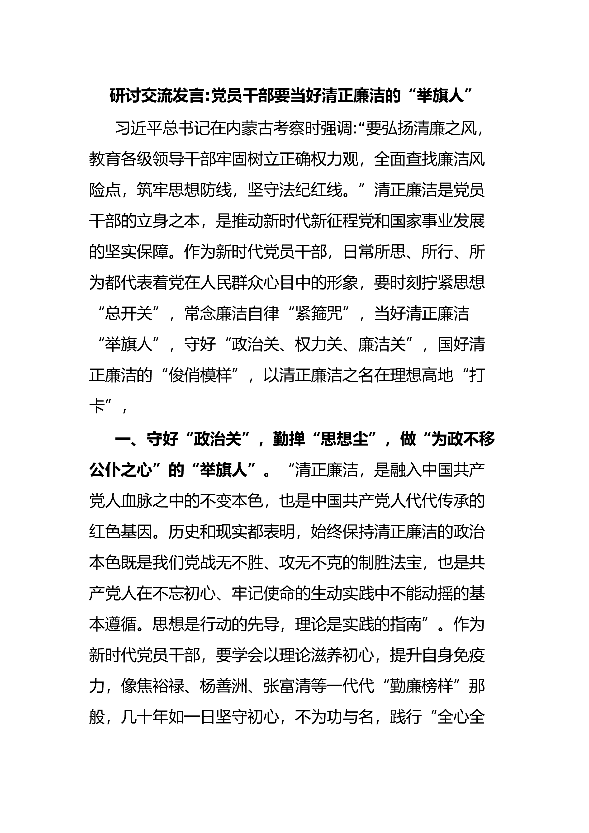 研讨交流发言党员干部要当好清正廉洁的“举旗人”