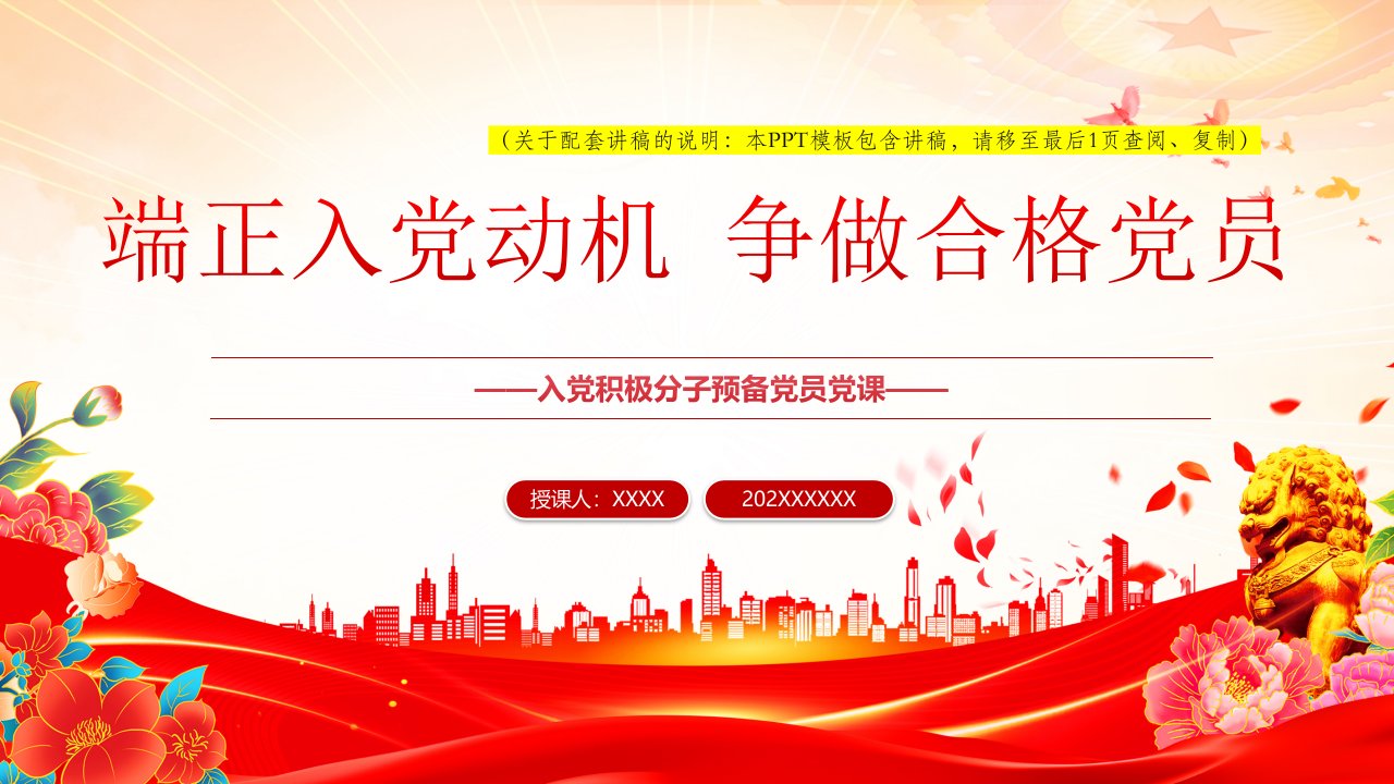 「党员学习ppt模板」入党积极分子必修党课端正入党动机争做合格党员党课ppt模板(含配套讲稿)