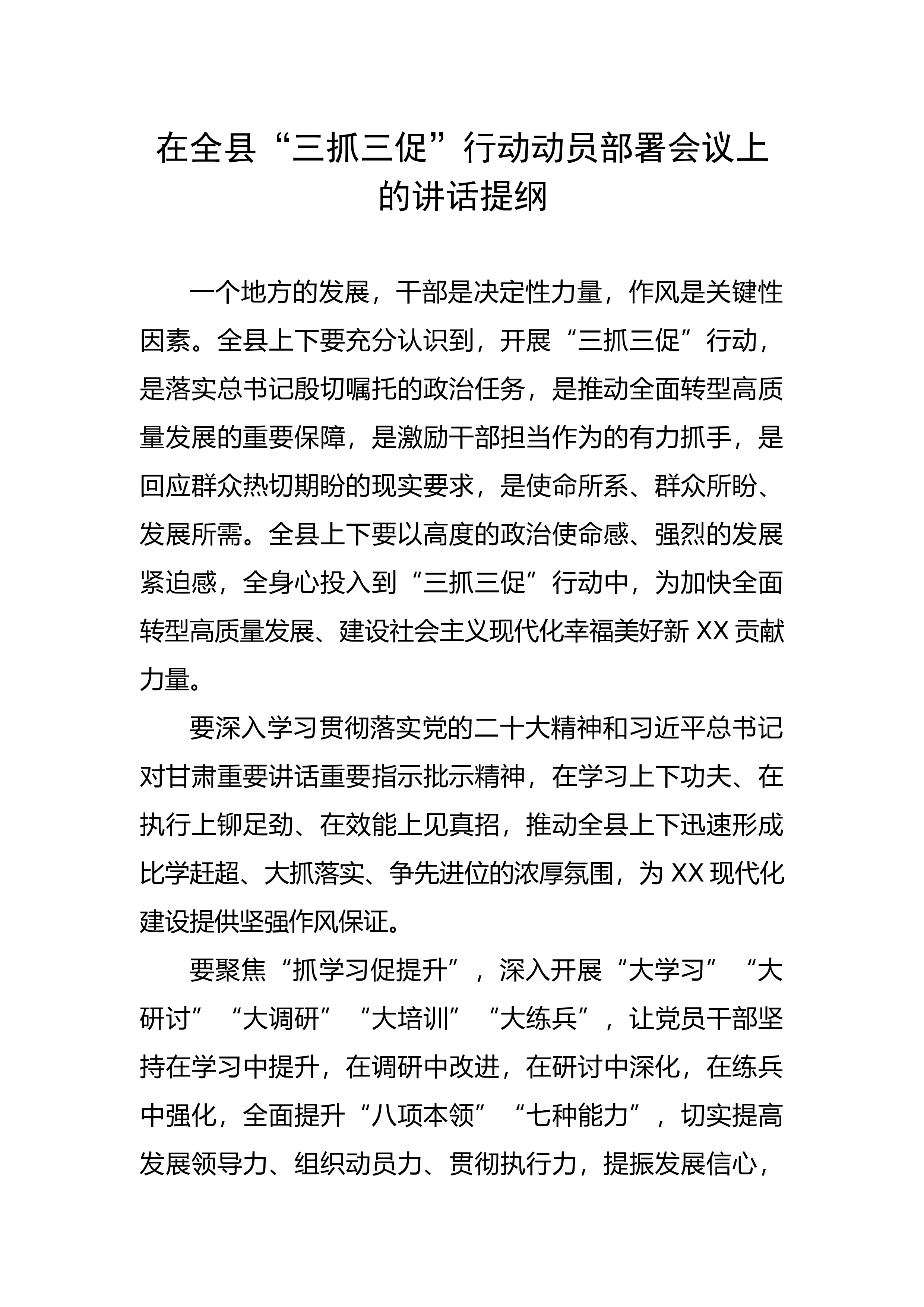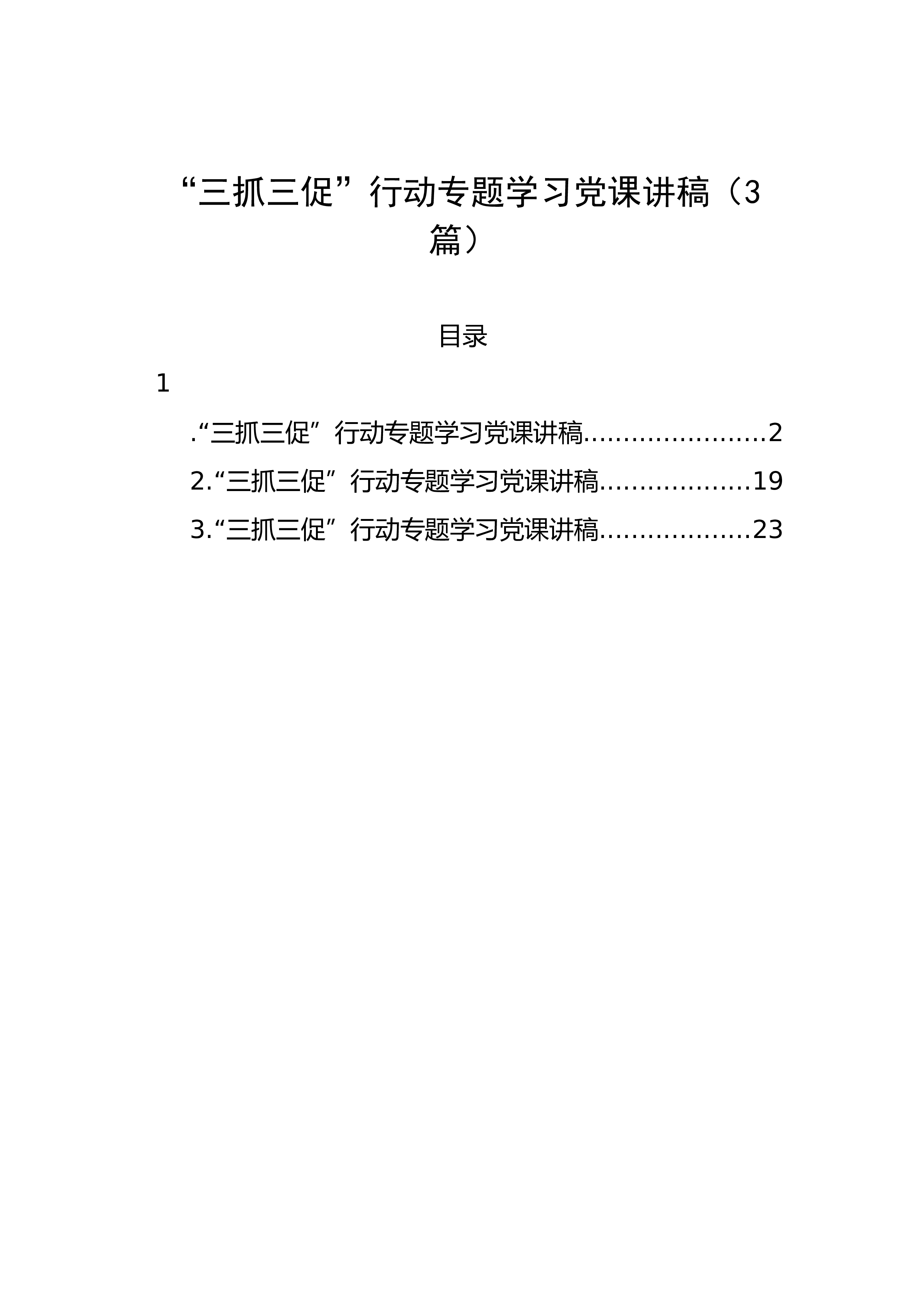 “三抓三促”行动专题学习党课讲稿(3篇)目录1.“三抓三促”行动专题学习党课讲稿.......................22.“三抓三促”行动专题学习党课讲稿...................193.“三抓三促”行动专题学习党课讲稿...................23“三抓三促”行动专题学习党课讲稿同志们:“三抓三促”行动这项工作意义深远、作用重大,省委已作出安排,昌升书记提出了具体、明确、有极强针对性和操作性的要求,开展“三抓三促”行动是时代的呼唤,必须在统一思想、提高认识中增强政治自觉。“三抓三促”行动是一场广泛而深刻的思想革命、作风革命和效能革命。是胸怀“国之大者”、主动...