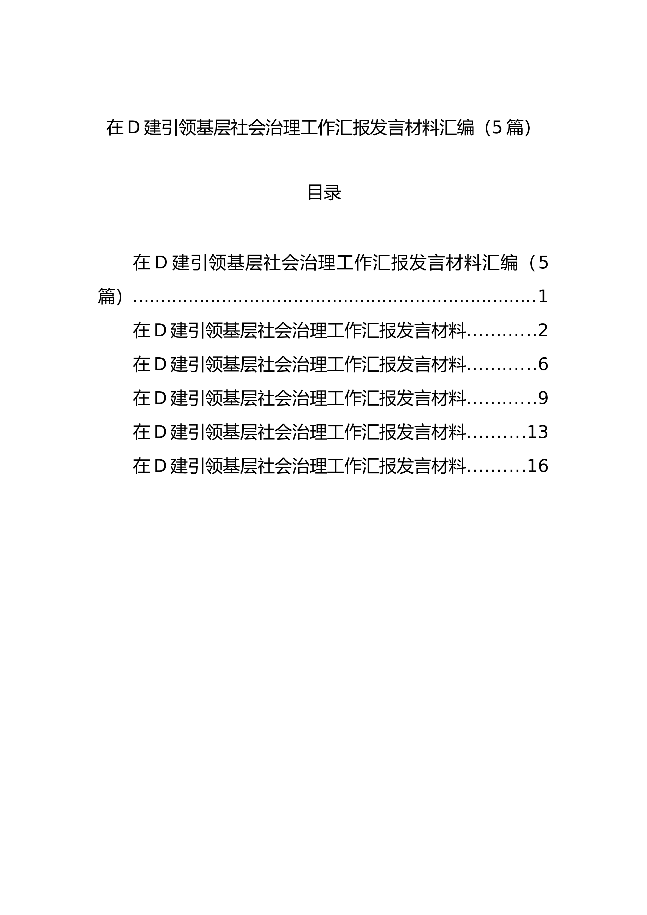 工作汇报发言材料汇编(5篇).........................................................................1在D建引领基层