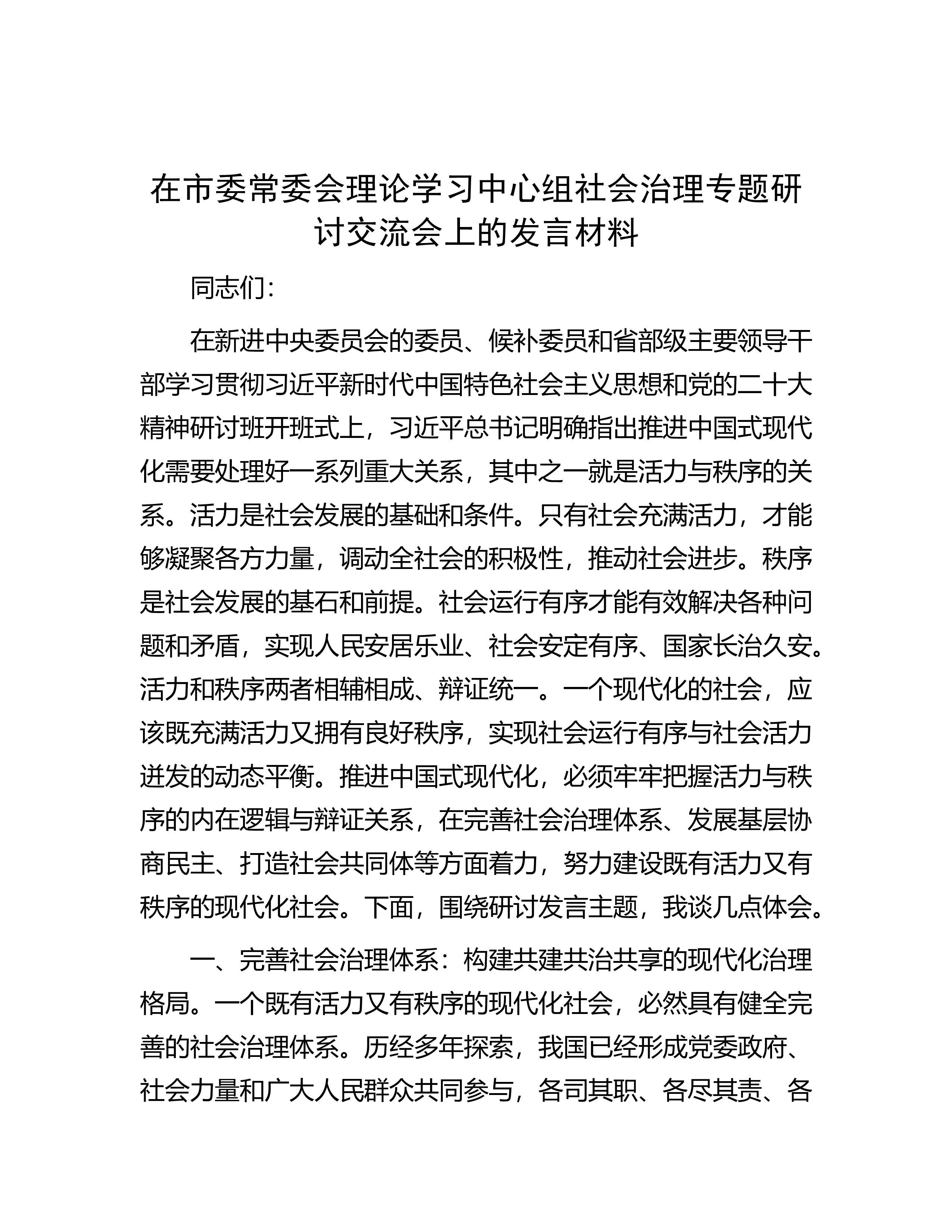 专题研讨交流会上的发言材料同志们:在新进中央委员会的委员、候补委员和省部级主要领导干部学习贯彻习近平新时代中国特色社会主义思想和党的二十大精神研讨班开班式上,习近平总书记明确指出推进中国式现代化需要处理好一系列重大关系,其中之一就是活力与秩序的关系。活力是社会发展的基础和条件。只有社会充满活力,才能够凝聚各方力量,调动全社会的积极性,推动社会进步。秩序是社会发展的基石和前提。社会运行有序才能有效解决各种问题和矛盾,实现人民安居乐业、社会安定有序、国家长治久安。活力和秩序两者相辅相成、辩证统一。一个现代化的社会,应该既充满活力又拥有良好秩序,实现社会运行有序与社...