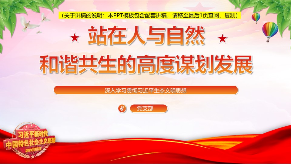 2024微党课2023站在人与自然和谐共生的高度谋划发展党课ppt模板(含配套讲稿)深入学习贯彻习近平生态文明思想专题党课课件