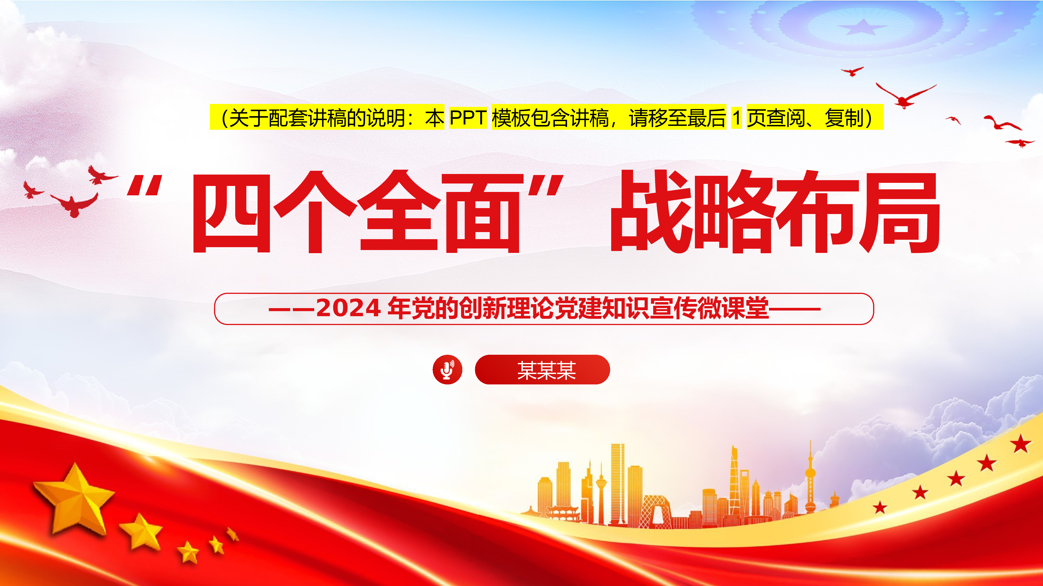 四个全面战略布局党课ppt模板(含配套讲稿)实用2024年党的创新理论党建知识宣传微课堂