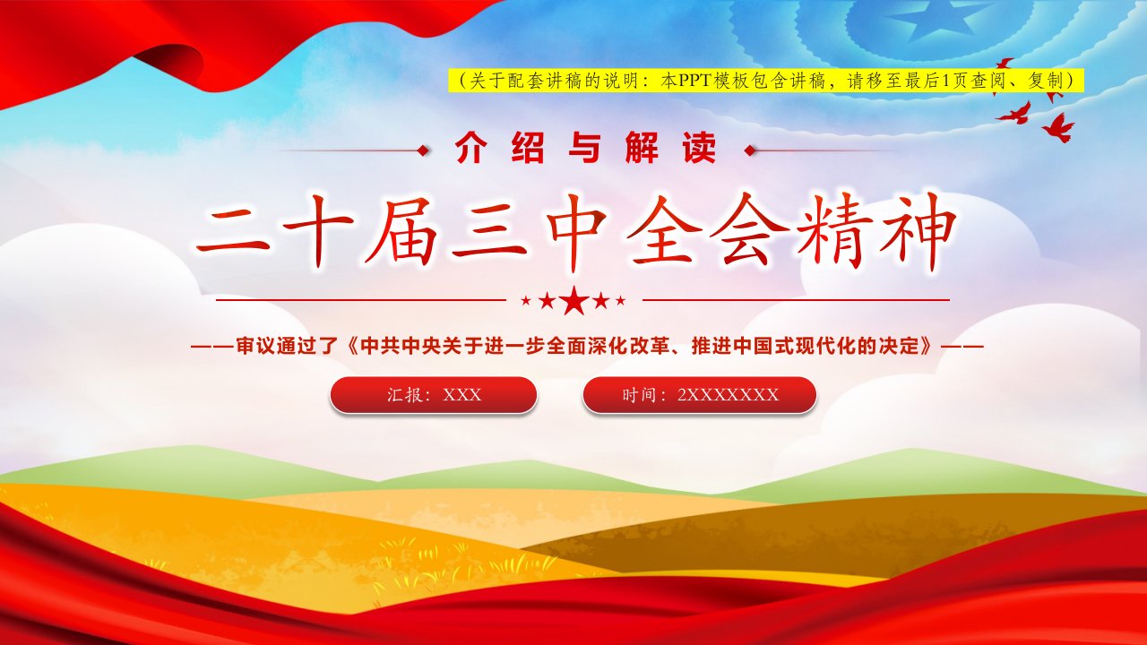 2024微党课介绍与解读二十届三中全会精神审议通过了《中共中央关于进一步全面深化改革、推进中国式现代化的决定》党课ppt模板(含配套讲稿)党员干部学习党课课件