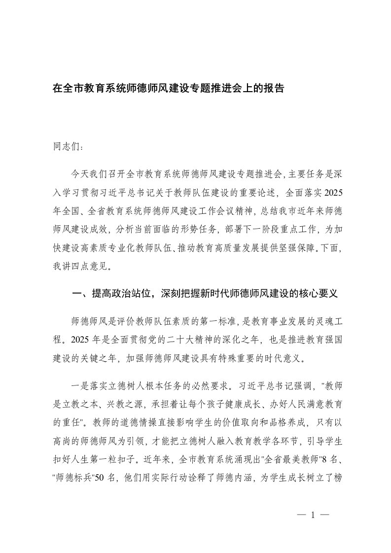 5篇2025年教育工委书记在全市师德师风建设年活动动员大会上的讲话学校师德师风建设工作经验交流发言