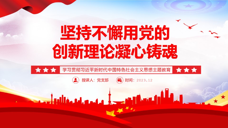 2024微党课2023坚持不懈用党的创新理论凝心铸魂党课ppt模板(带内容)深入学习贯彻习近平新时代中国特色社会主义思想教育专题党课课件