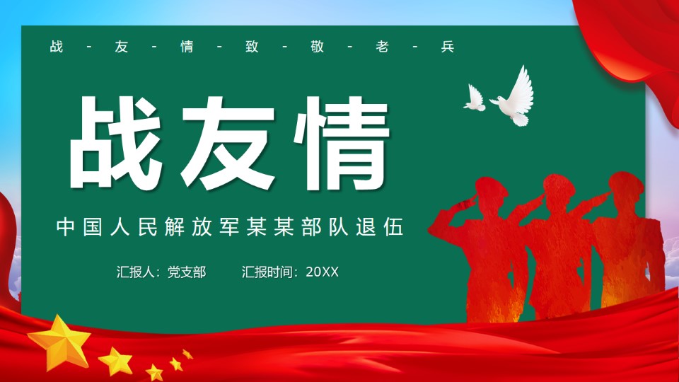 老兵战友情ppt模板(带内容)党支部党课ppt模板下载党课ppt,党课ppt模板党政风致敬