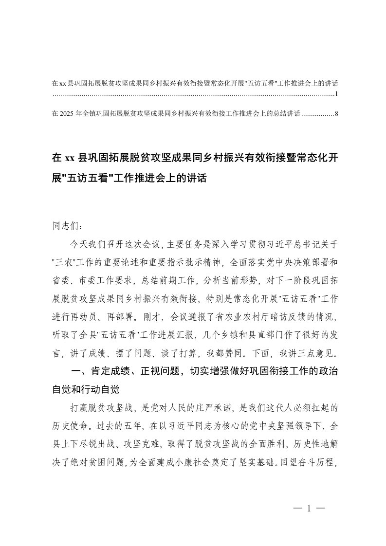 成果同乡村振兴有效衔接暨常态化开展五访五看工作推进会上的讲话