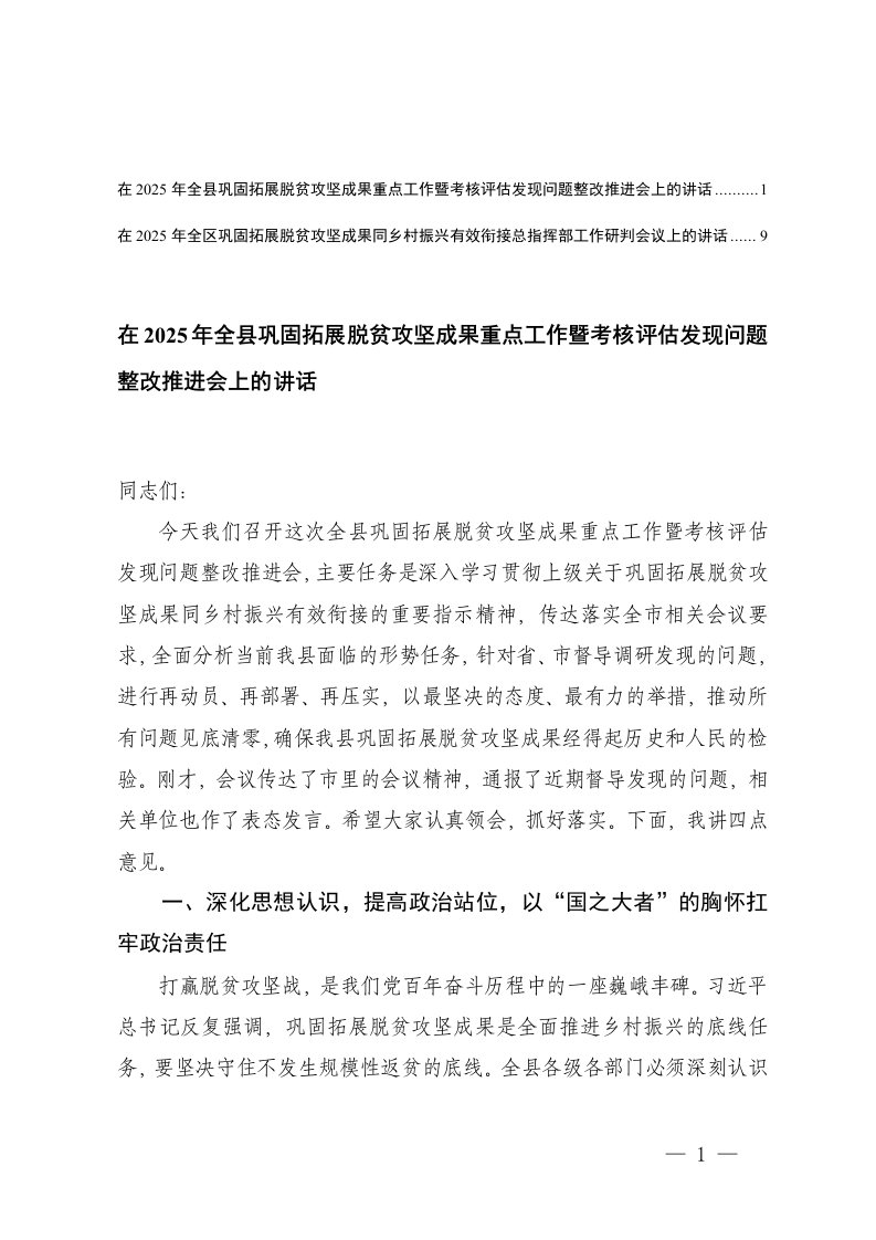 成果同乡村振兴有效衔接总指挥部工作研判会议上的讲话暨考核评估发现问题整改推进会上的讲话