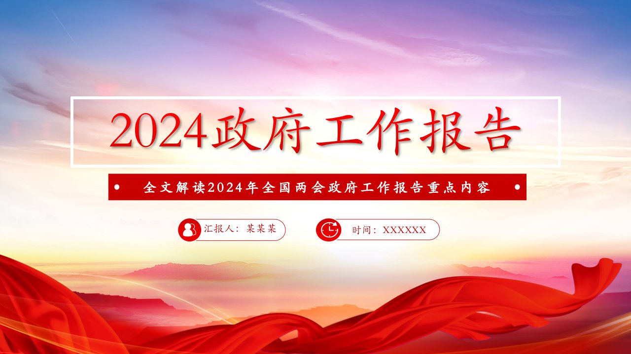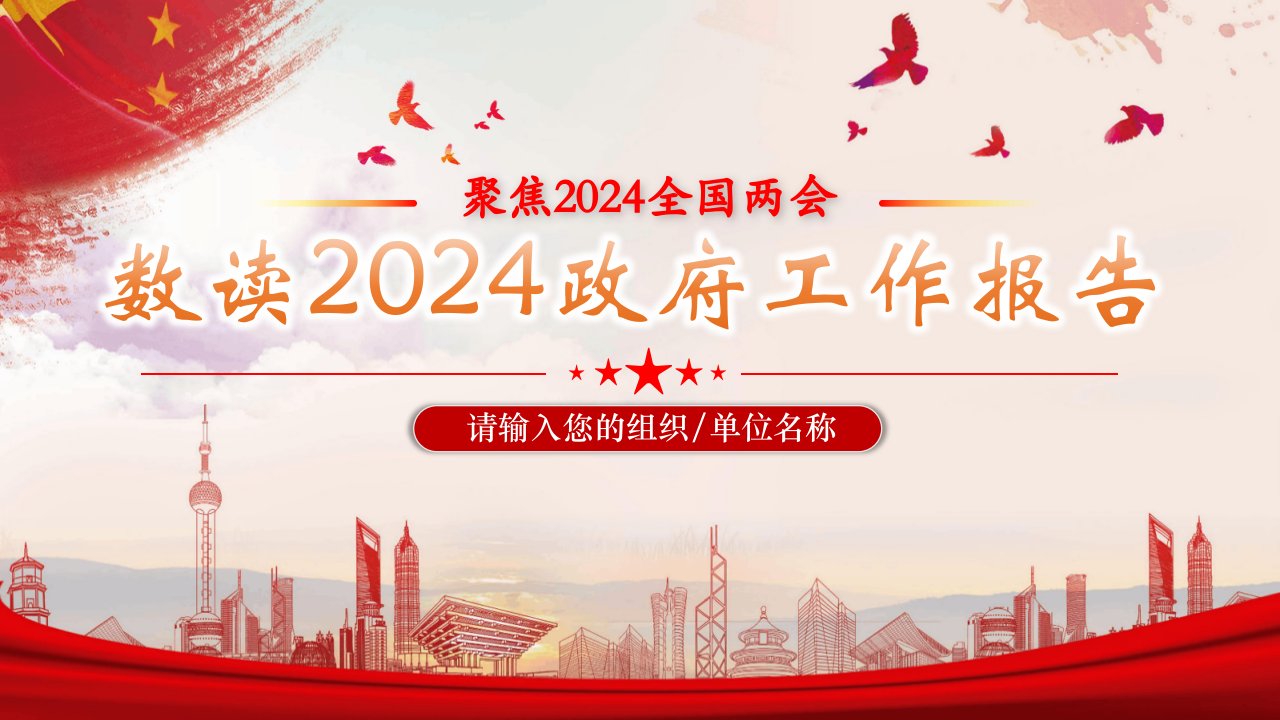 极简版数读2024政府工作报告 党课ppt模板(带内容)党支部团支部党员干部学习党课课件 大气精美全国两会专题微党课ppt