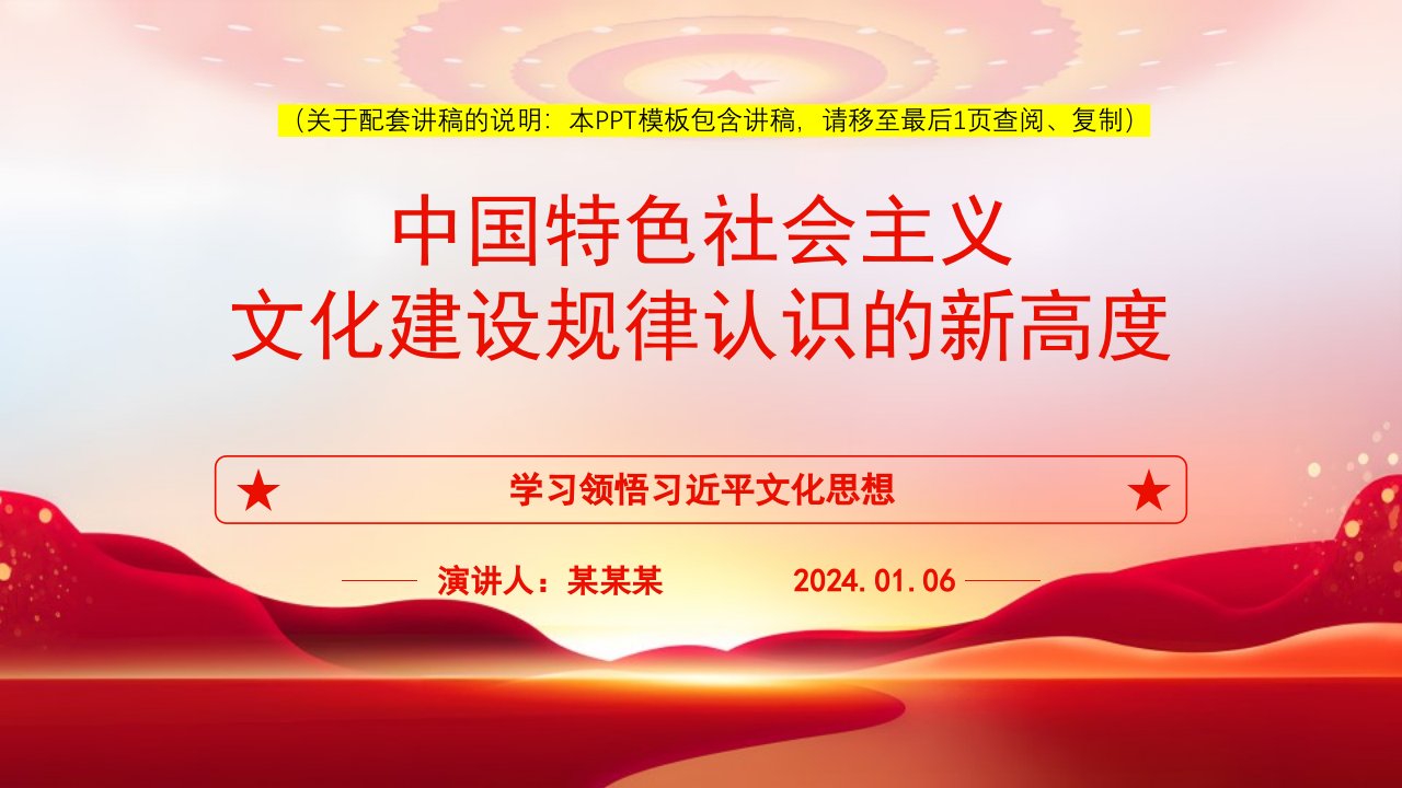 2024对中国特色社会主义文化建设规律认识的新境界党课ppt模板(含配套讲稿)学习领悟习近平文化思想微党课