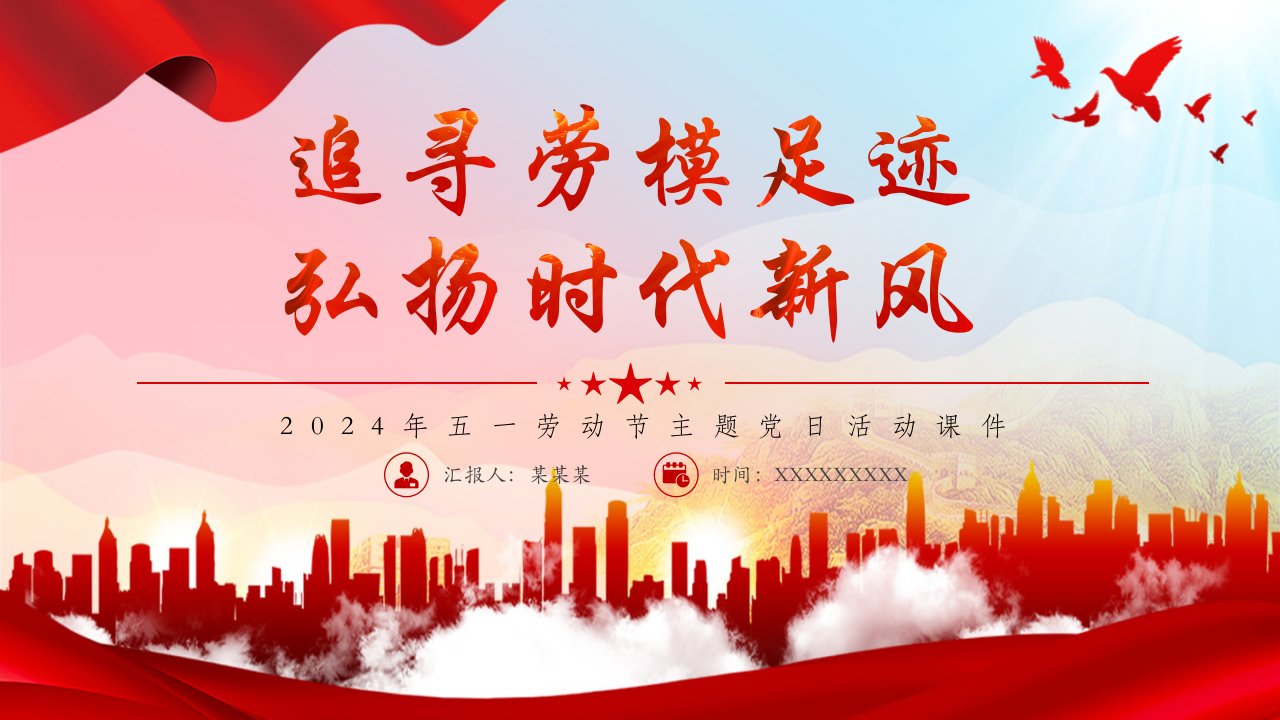 2024年五一劳动节主题党日追寻劳模足迹弘扬时代新风党课ppt模板(带内容)党支部团支部党员干部学习党课课件